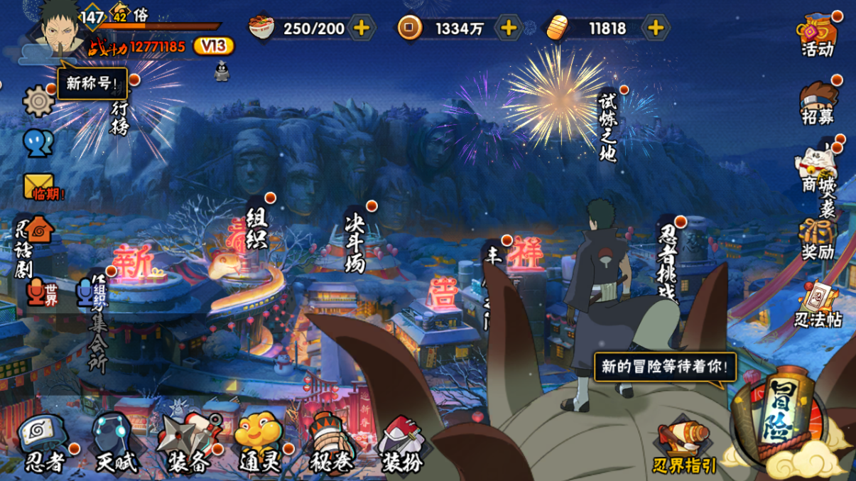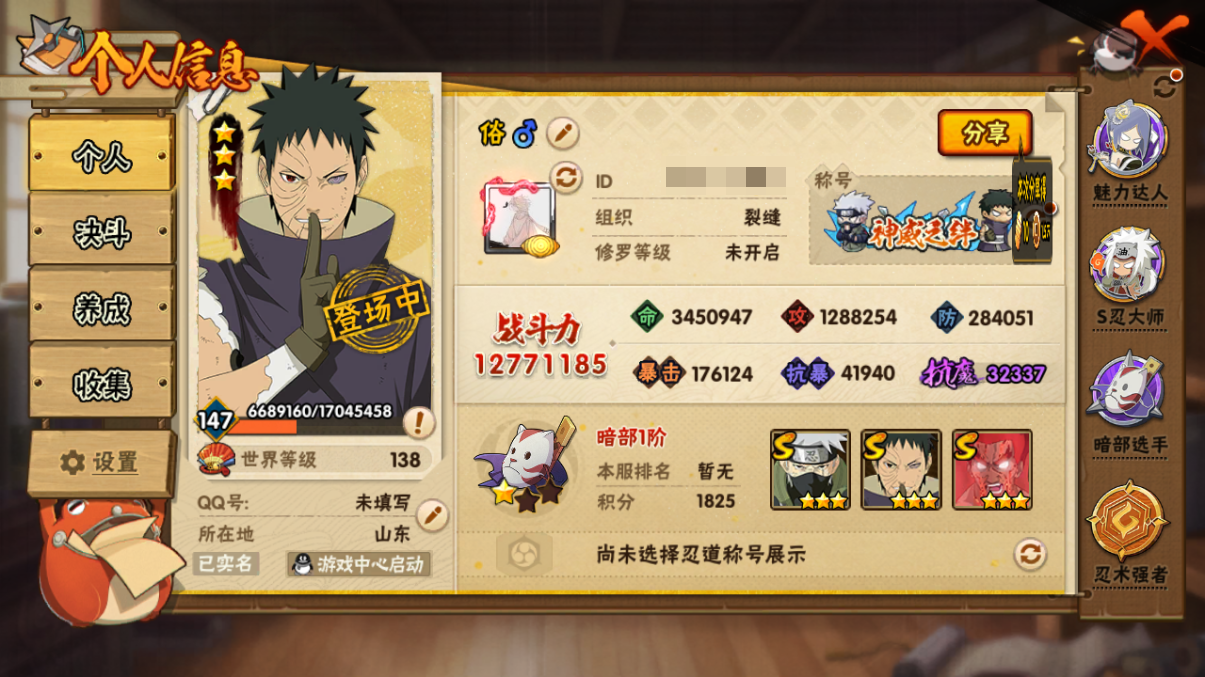火影忍者【安卓QQ】1277W战力破面红夜创斑26S+3个198直购A+创柱三风