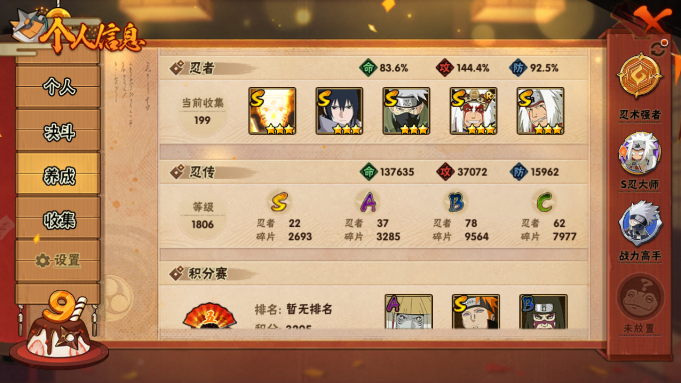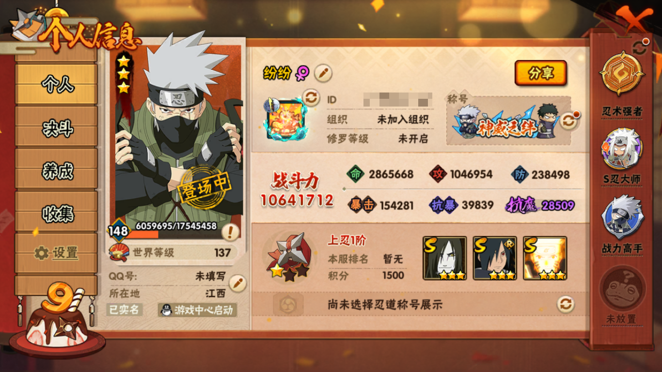 火影忍者【安卓QQ】1064w战力解斑破面22S+2个198直购A37A战力10