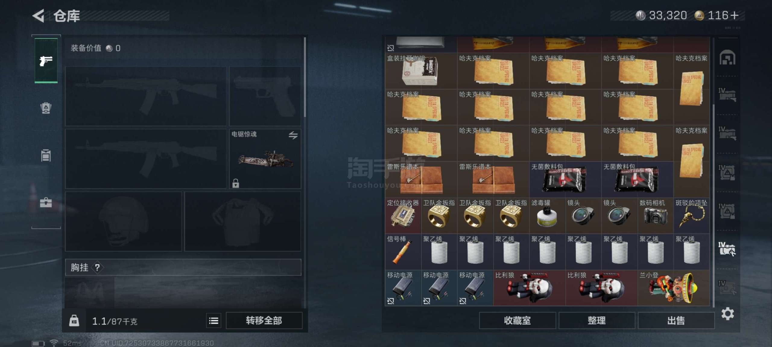 纯猛攻号,特勤处体力负重全满级,枪械皮肤 270 个 详细看图
