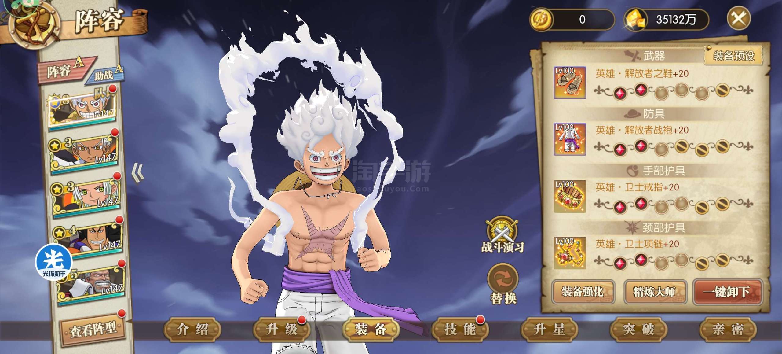 航海王:燃烧意志【安卓4399】千速双装备8尼卡4391券金魂尼卡满级训练2517券1874金魂可三觉御田老鹰蛇女超强阵容4399版