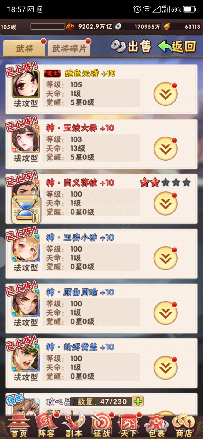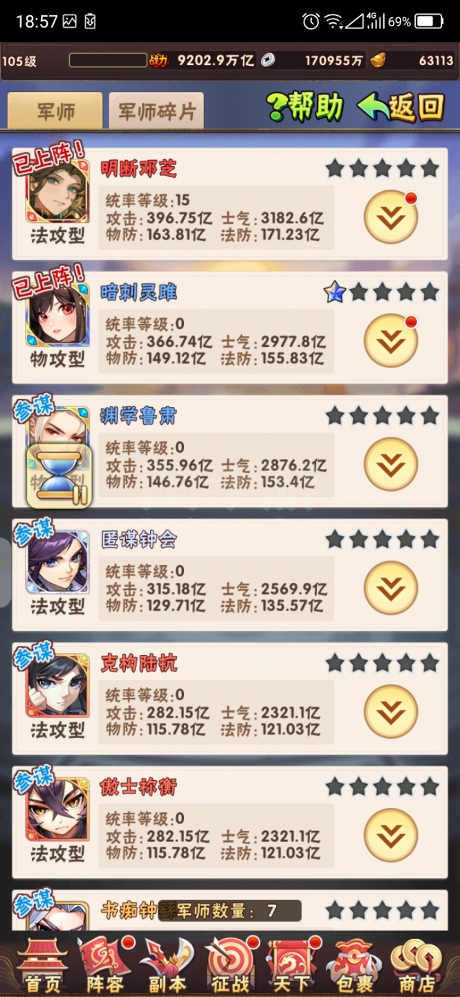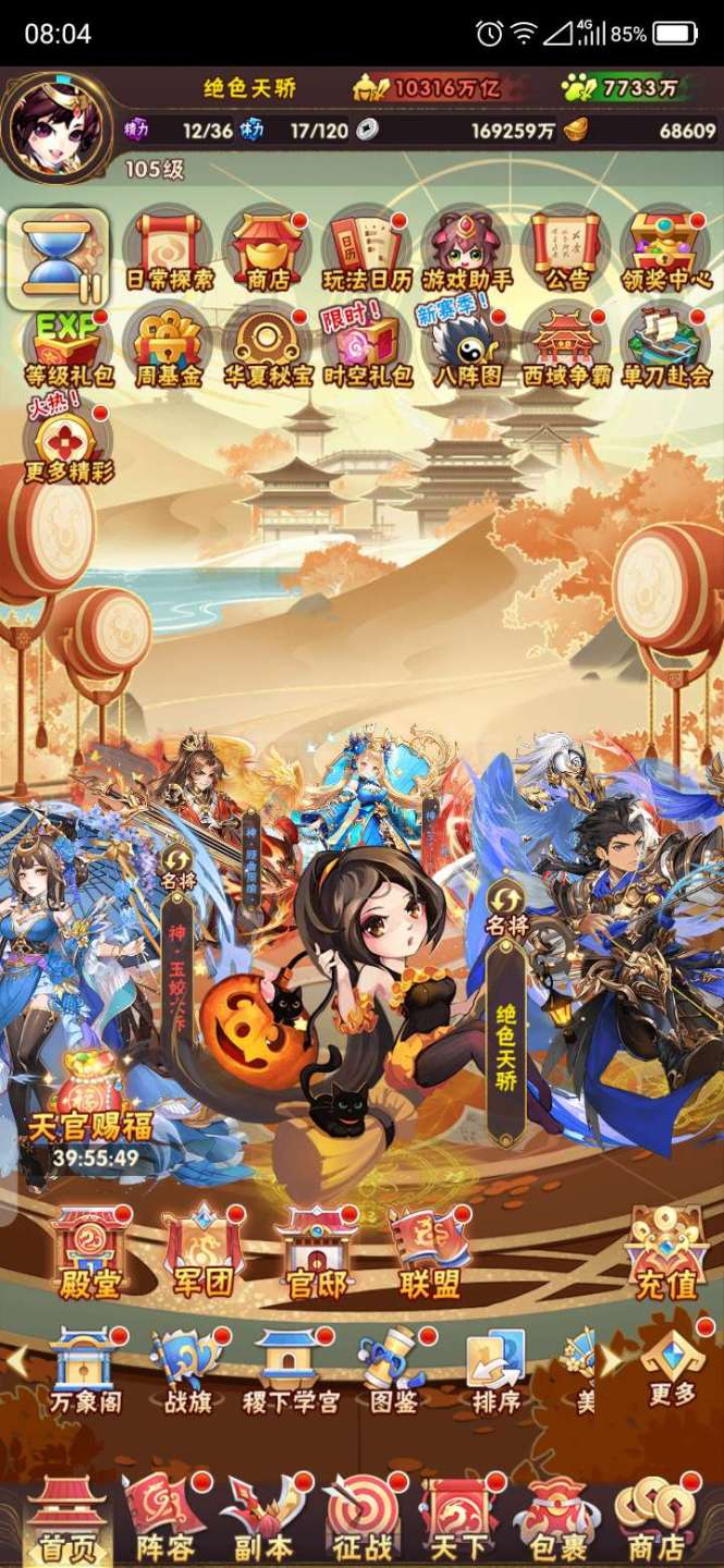 战力1万亿昊金三将第一军团105级