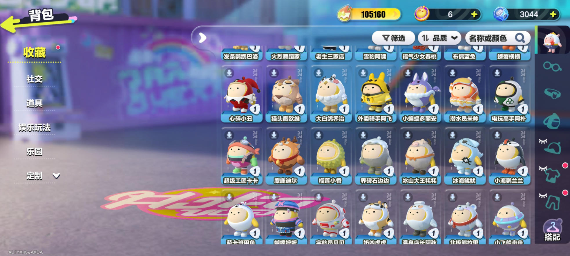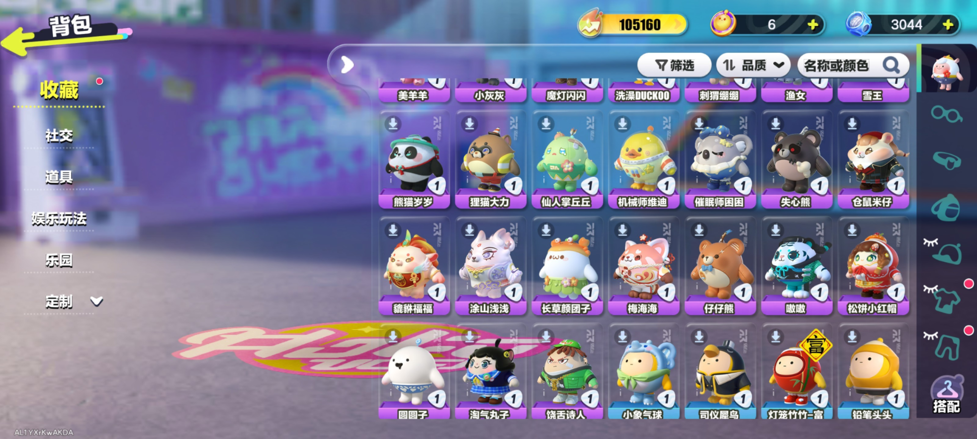 紫皮:鸭鸭 DongDong,双面教师林野,淘气妹妹,元气丸子,冷面千金竹月,超燃蛋小蓝,超燃蛋小绿,超燃蛋小粉,劝学小子,大娃,花灯兔夭夭,渡鸦阿舍尔,执法官布谷,矮人工匠托尔,幽猎塞莉诺,街头一霸鲸哥,圆舞绮步可可,波泡儿,草头娃娃茵茵,