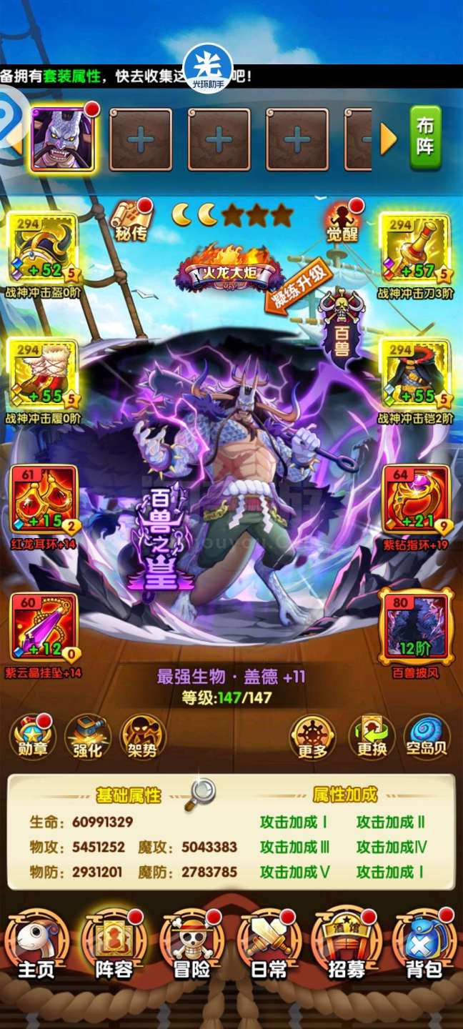 航海王强者之路【安卓91】典藏凯多,单人无替补,符石全开
