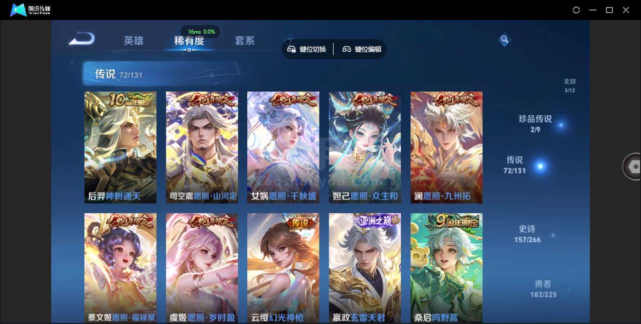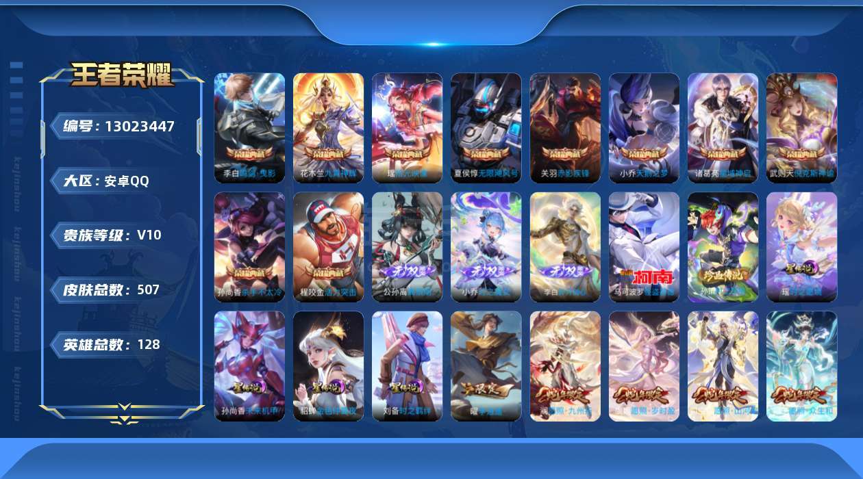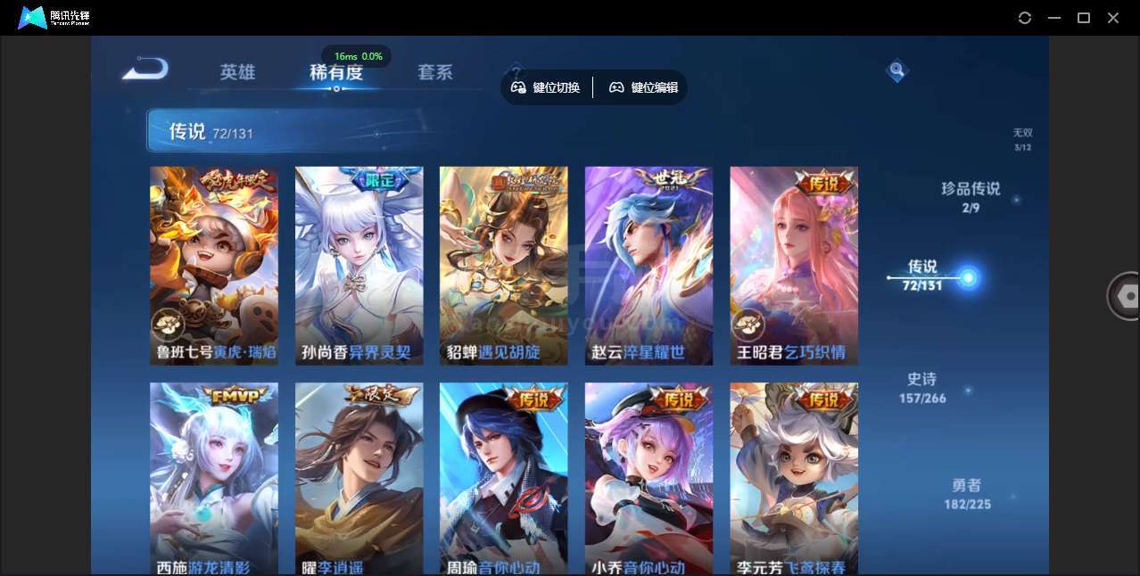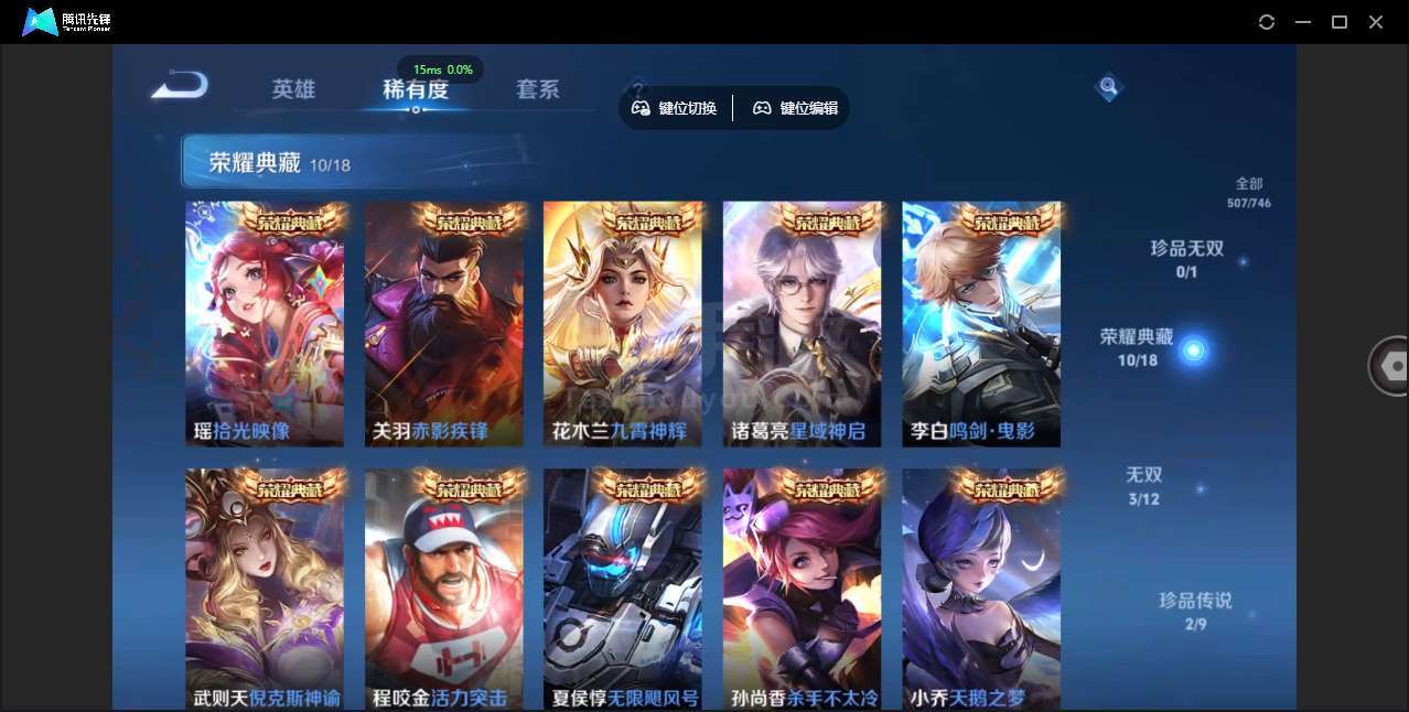 kyv10!瑶典藏!可认证安卓(q)区507皮11典藏3无双2珍品传说72传说4星211限定27王者