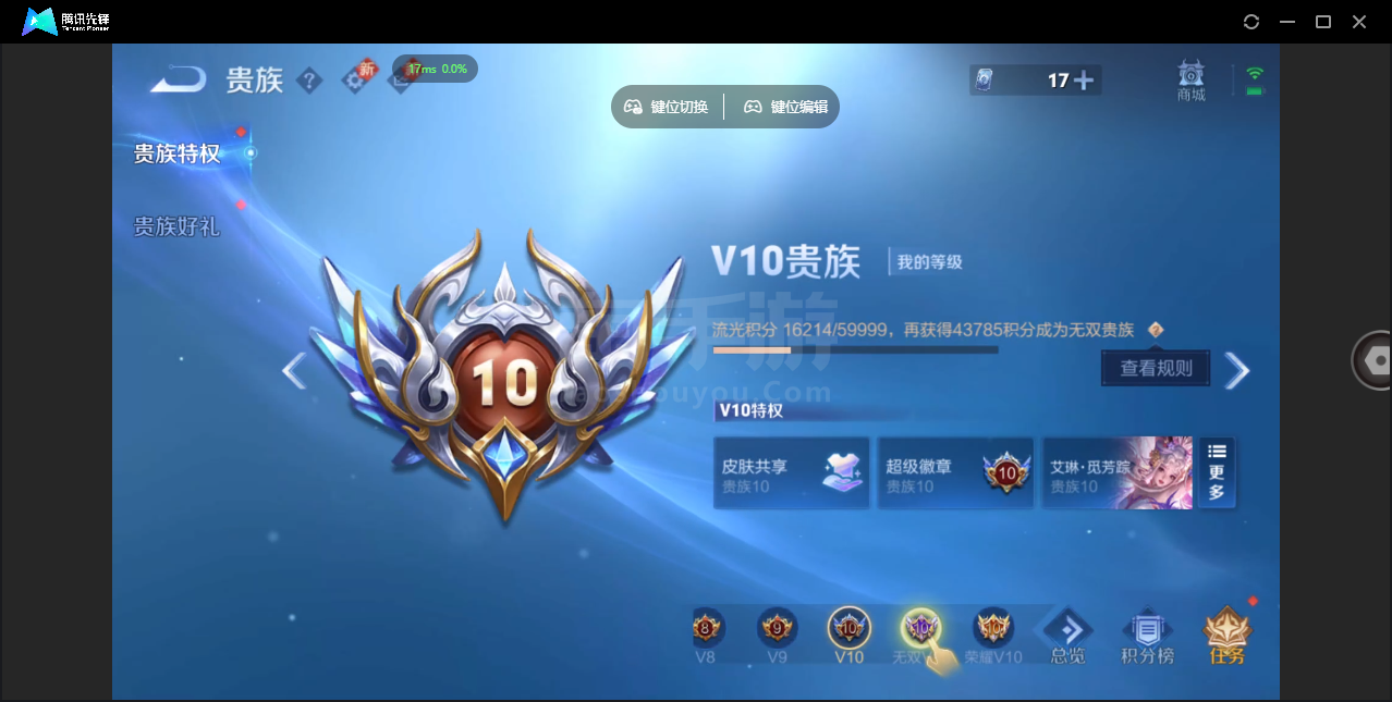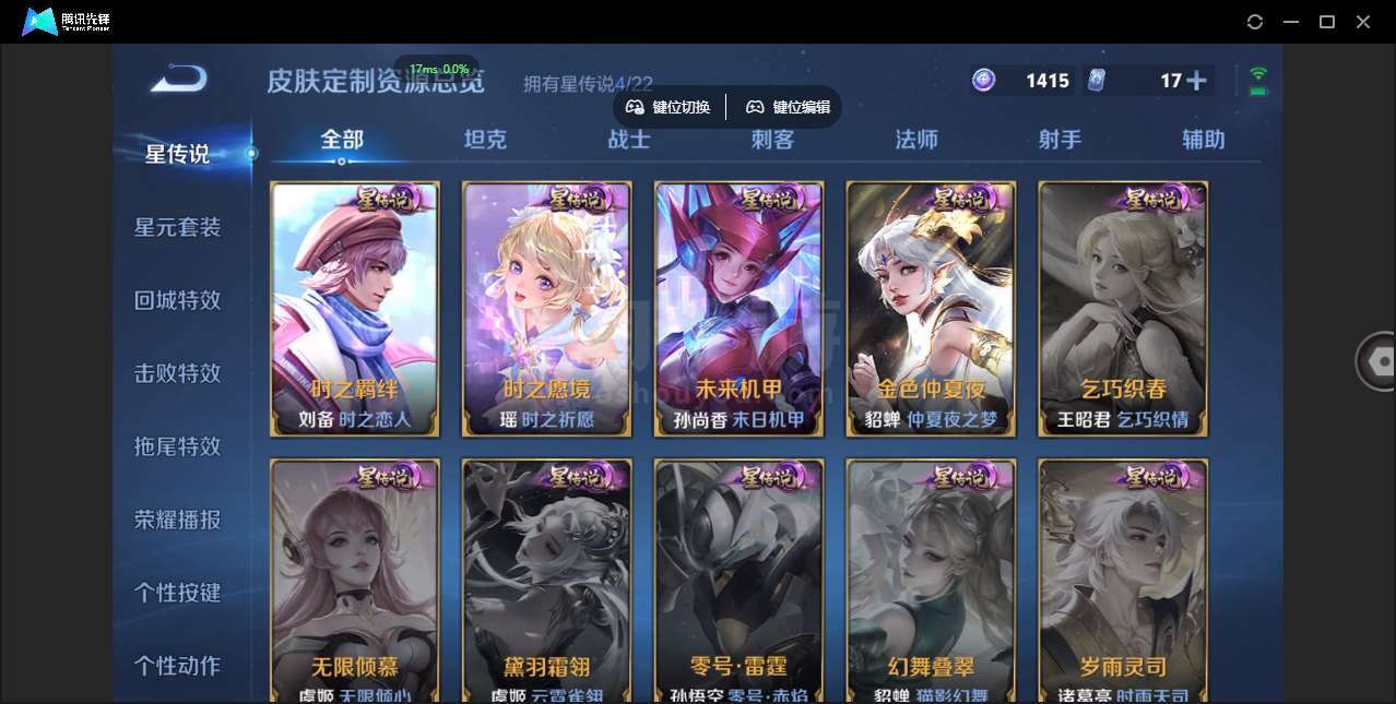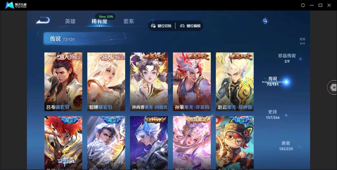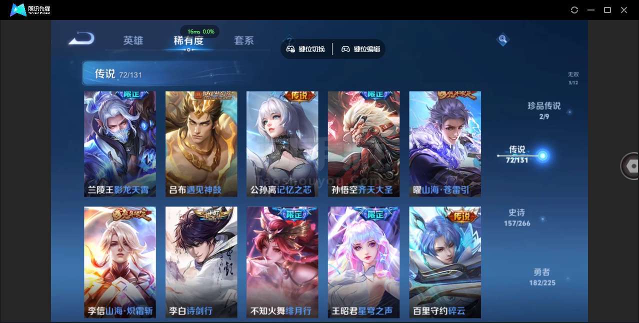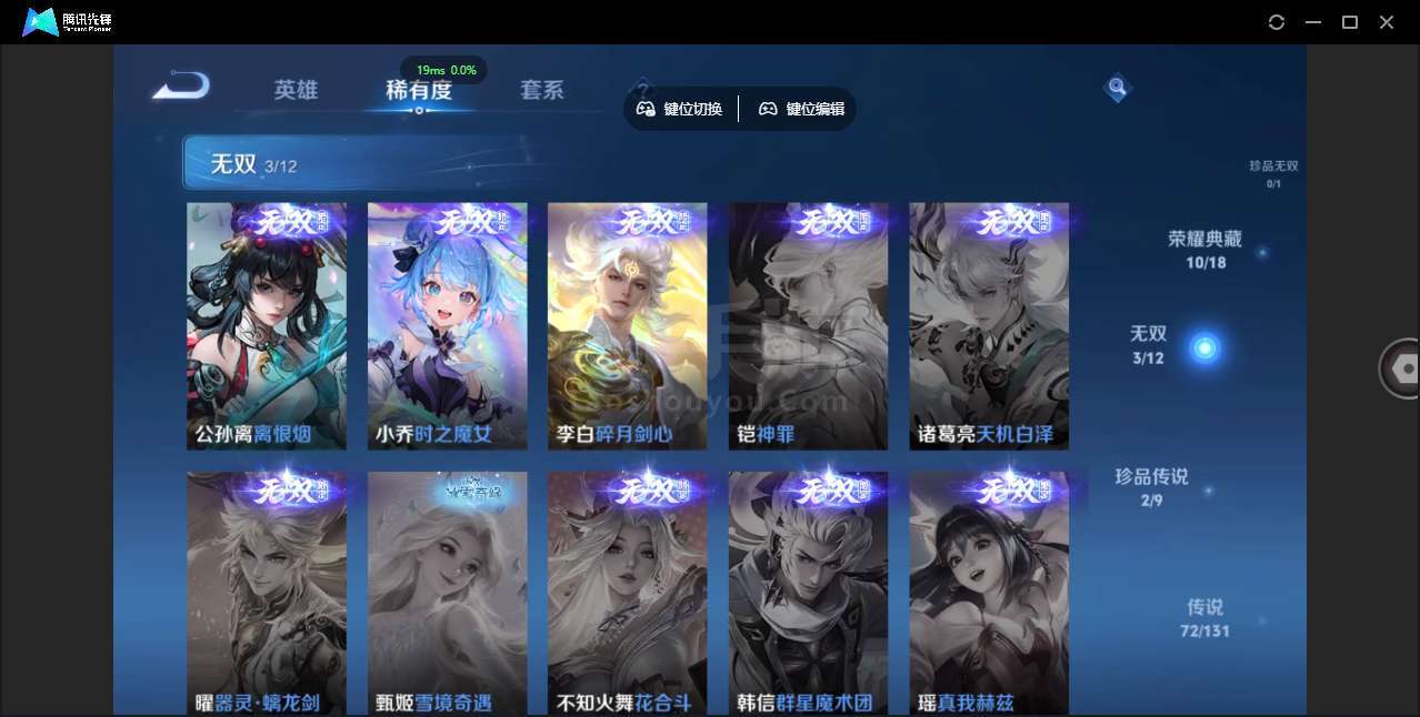 kyv10!瑶典藏!可认证安卓(q)区507皮11典藏3无双2珍品传说72传说4星211限定27王者