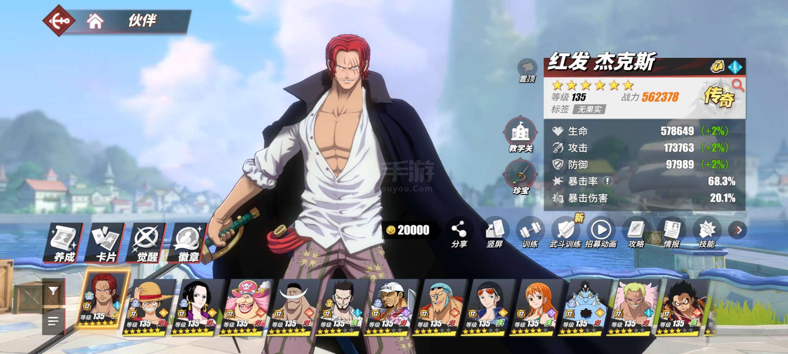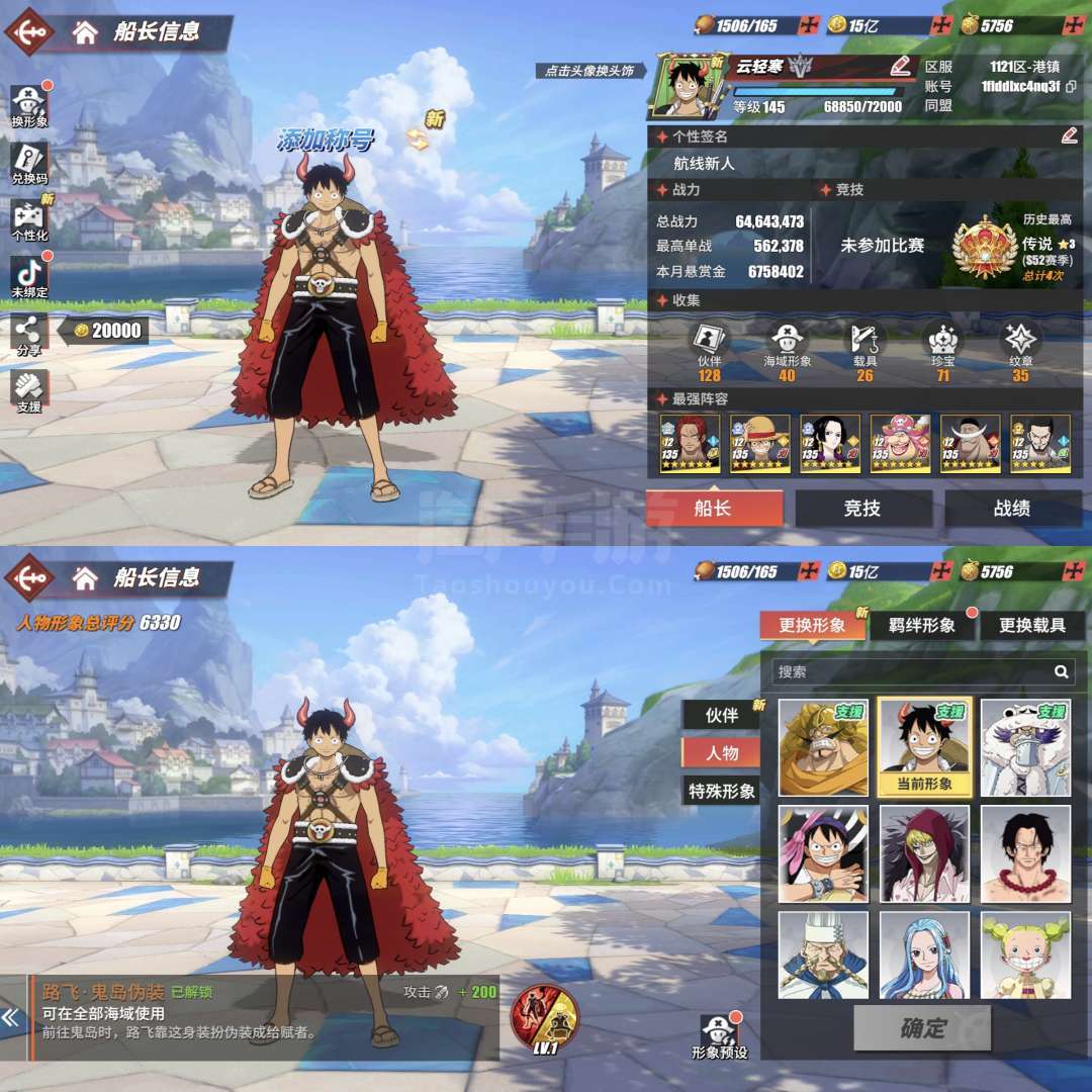 航海王热血航线【安卓官方】6460万战力。69传奇8强者3典藏。3个98友情技。5700金果 10强者抽 22高级抽。6星