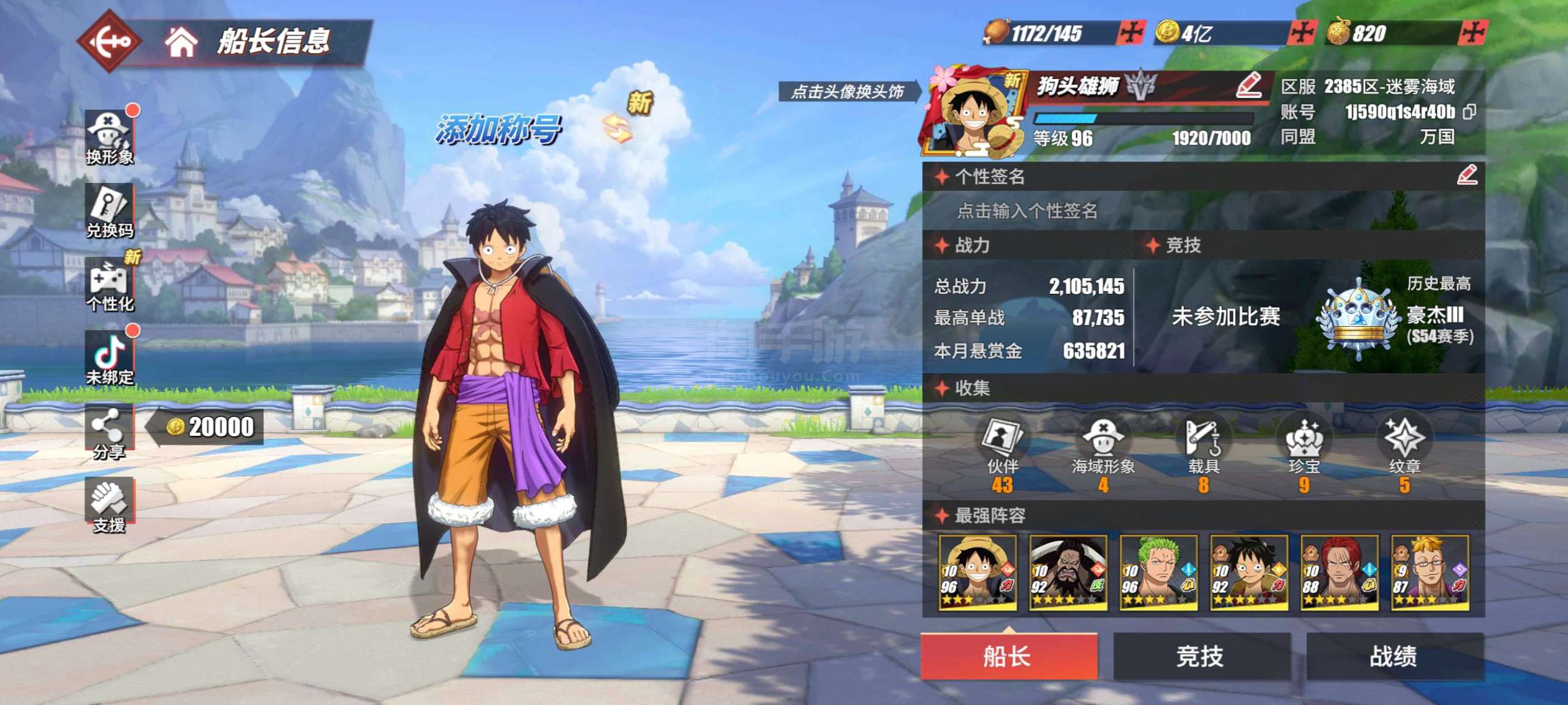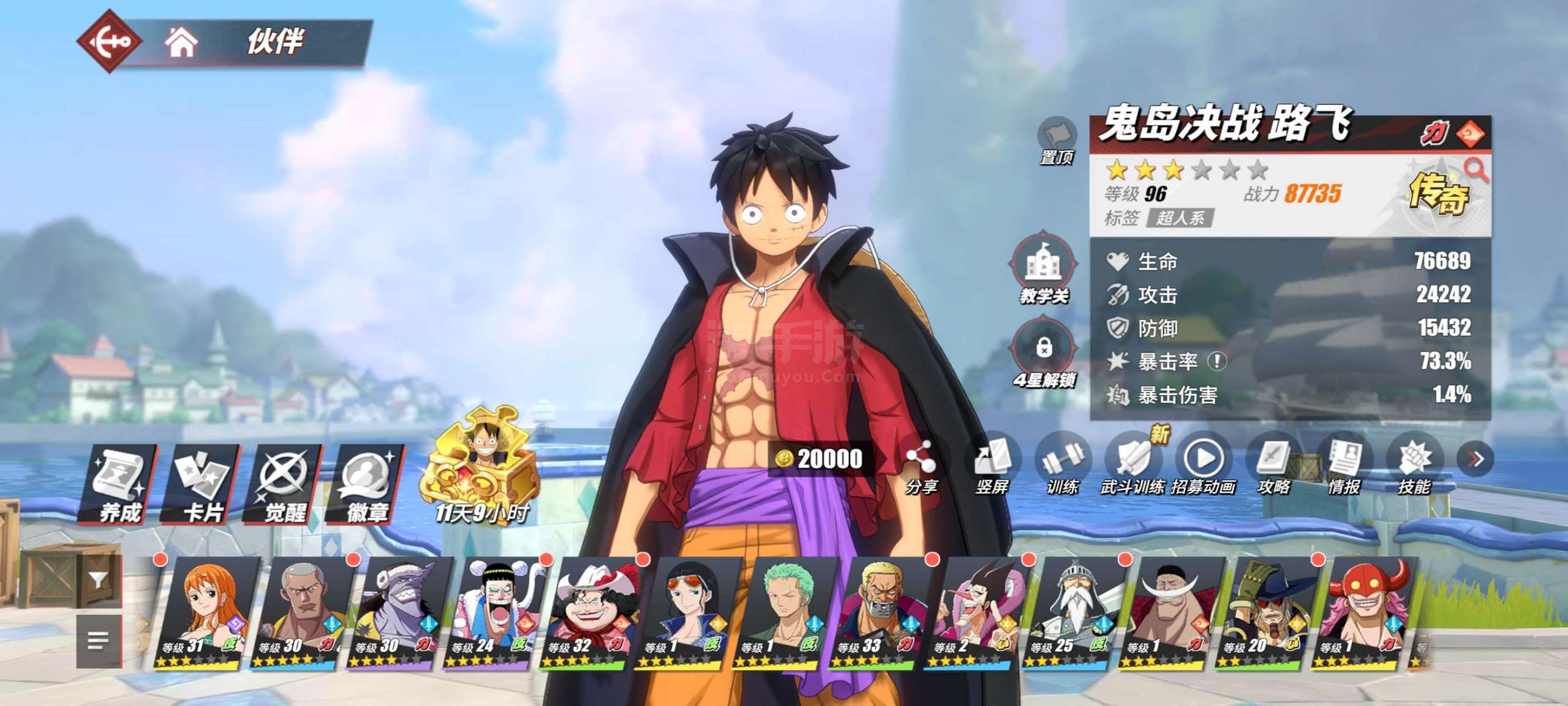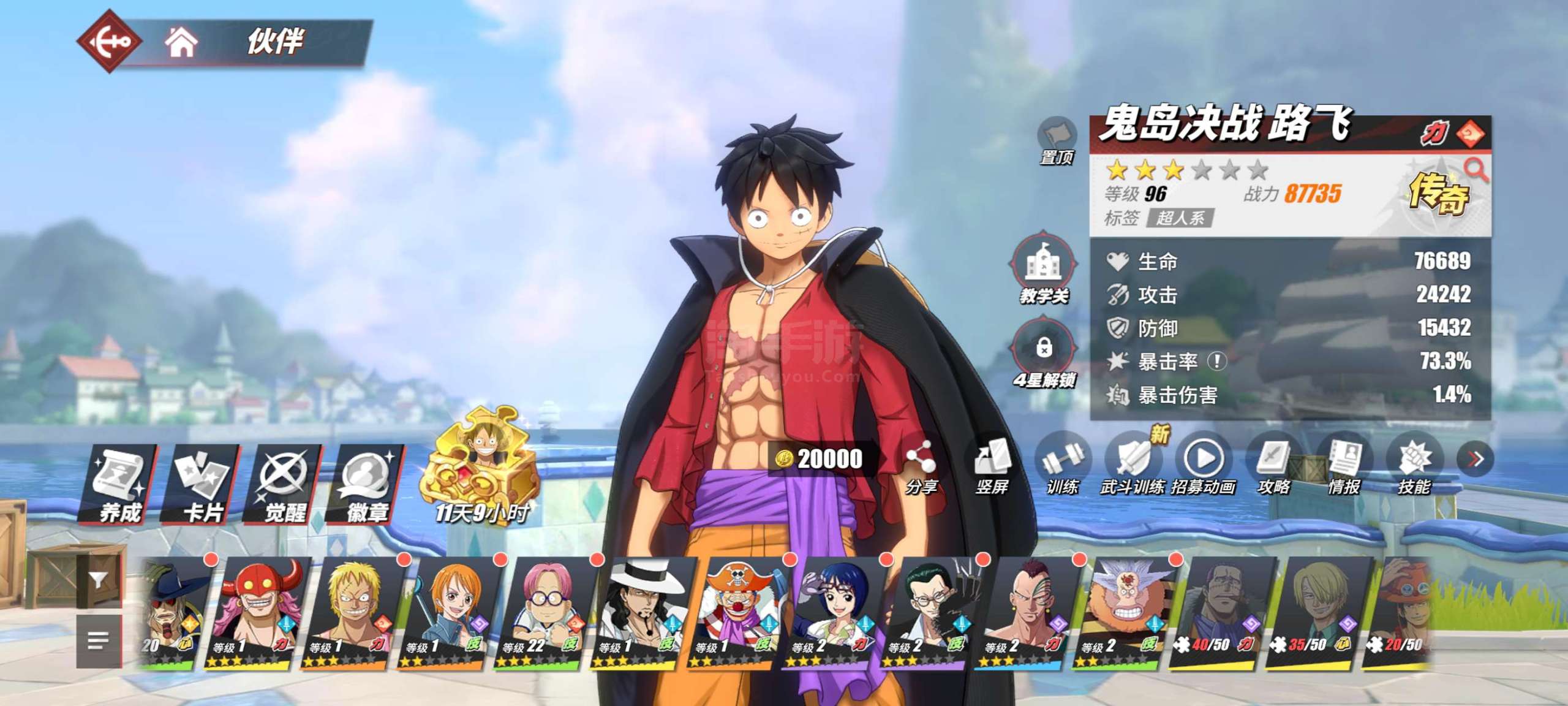 有鬼岛路飞,白衣路奇等20个传奇伙伴,2000万战力,凯多快升星了,有月卡