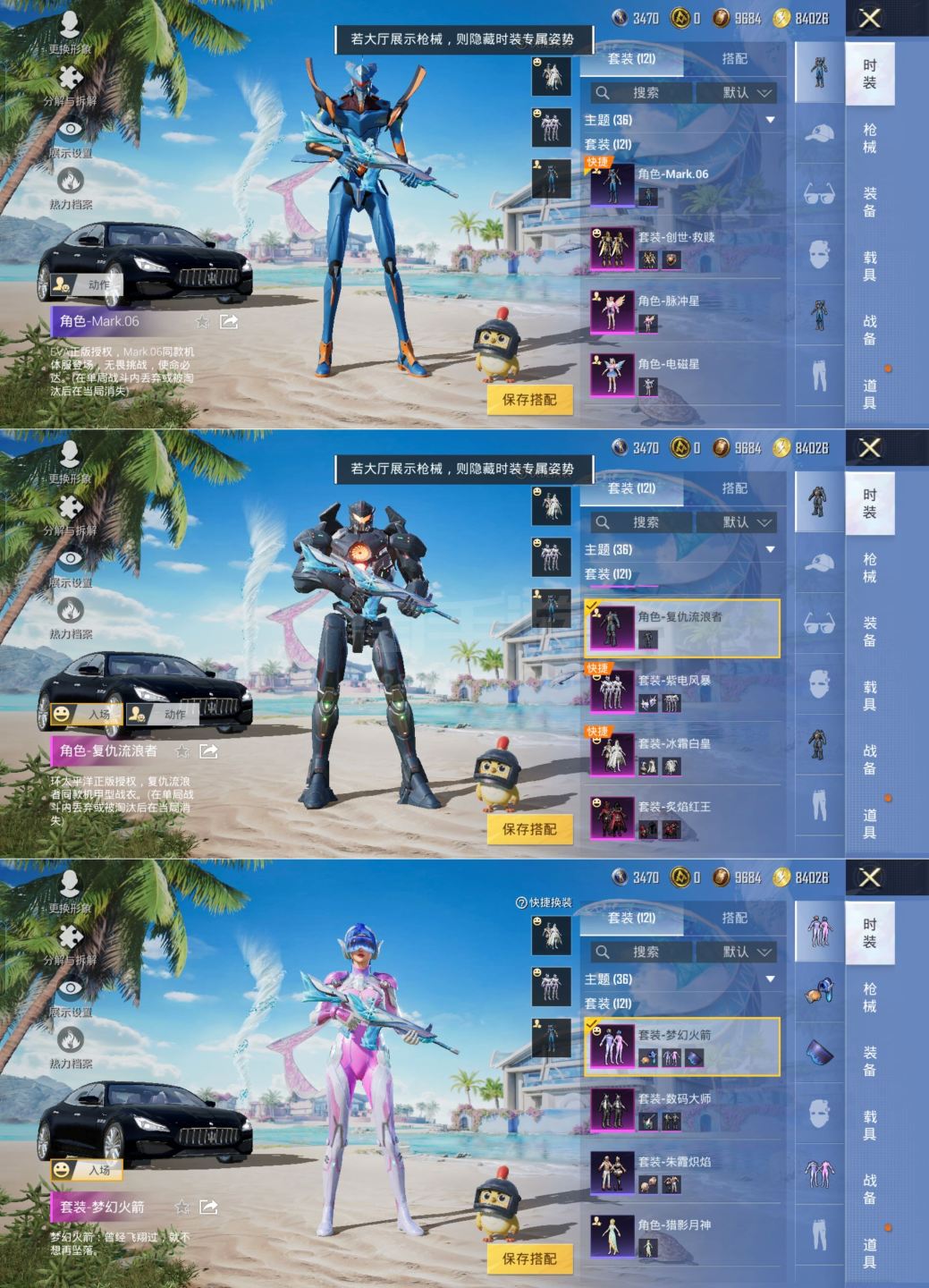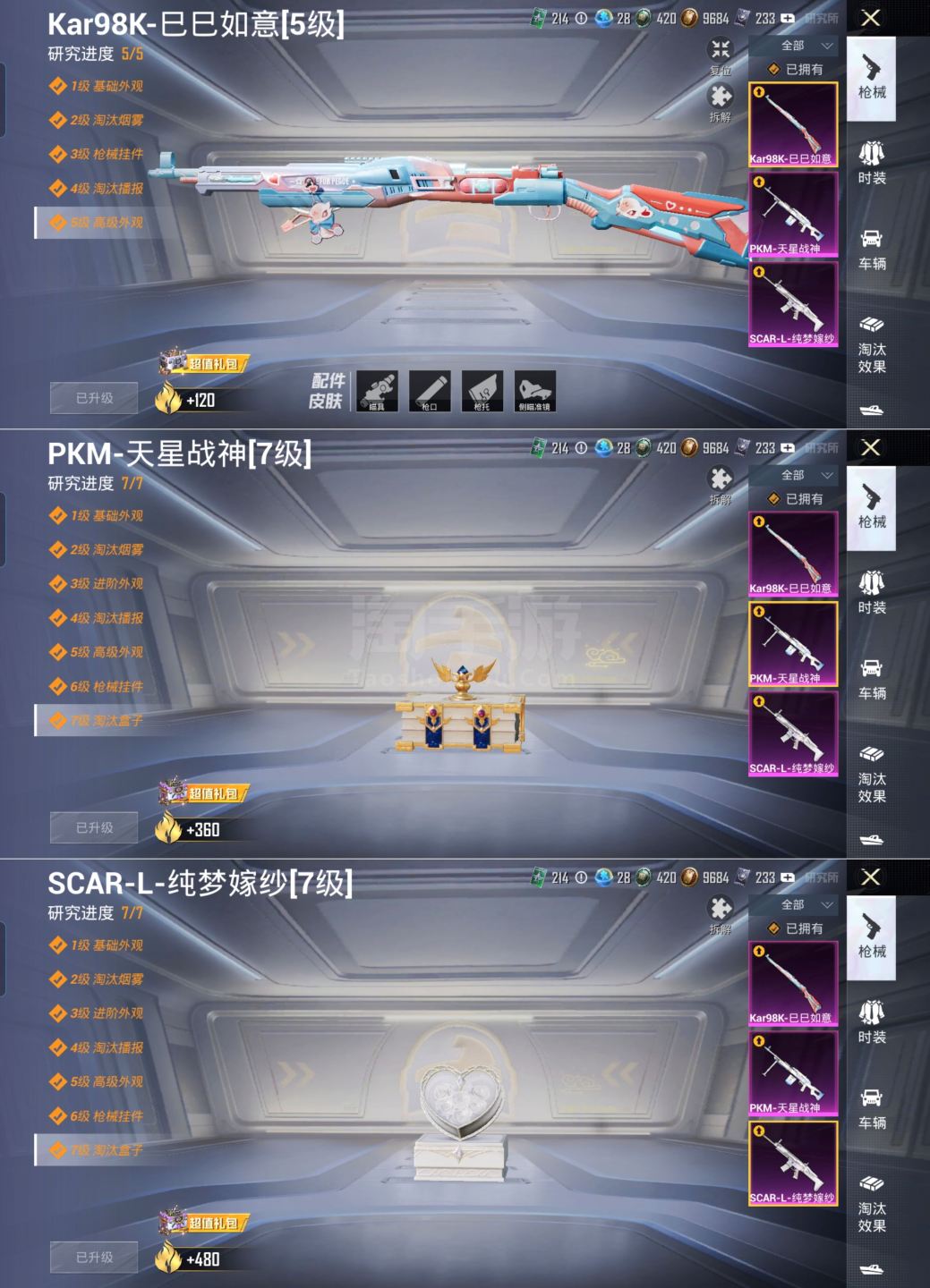 M101796【身法号1载具9粉装3特效枪 梦幻火箭 2螳螂 纯梦嫁纱 (7级) 天星战神 (7级)