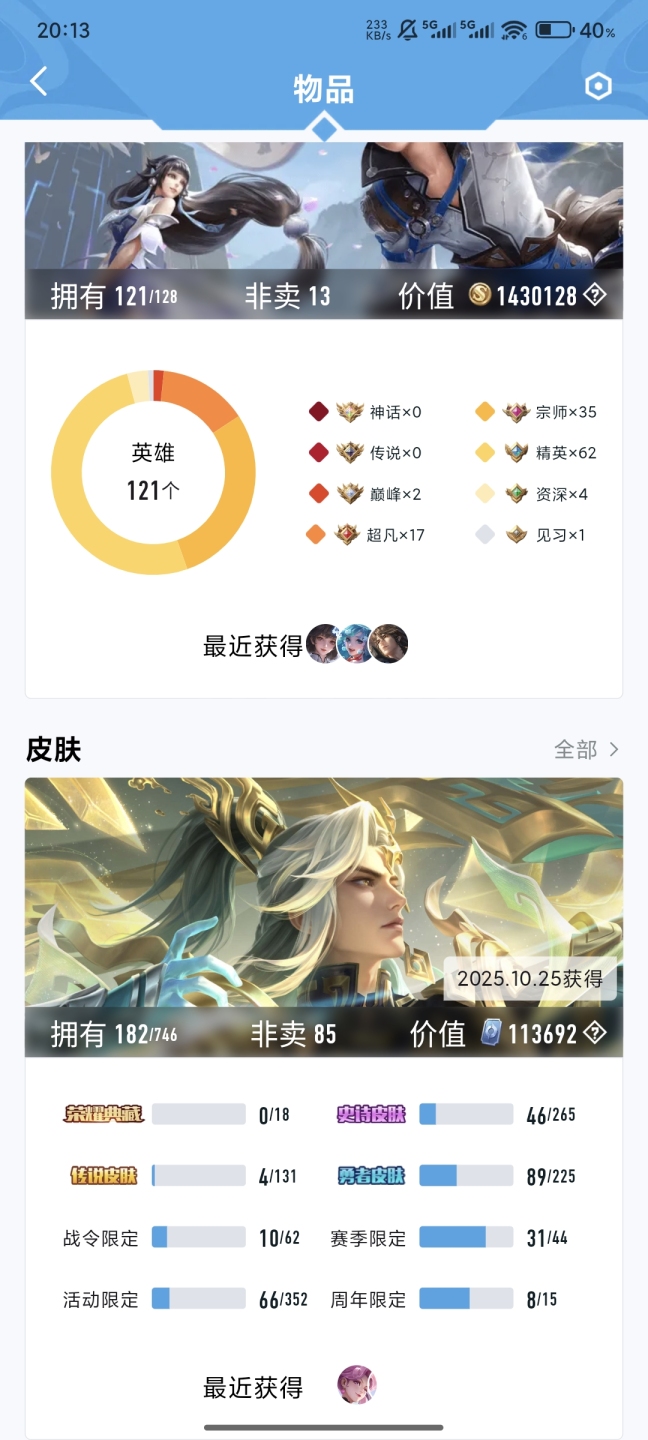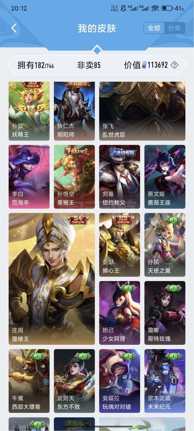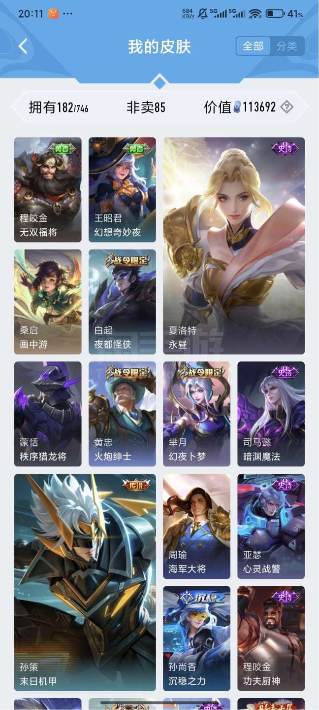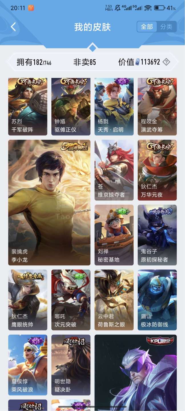 王者v7,121英雄182皮肤