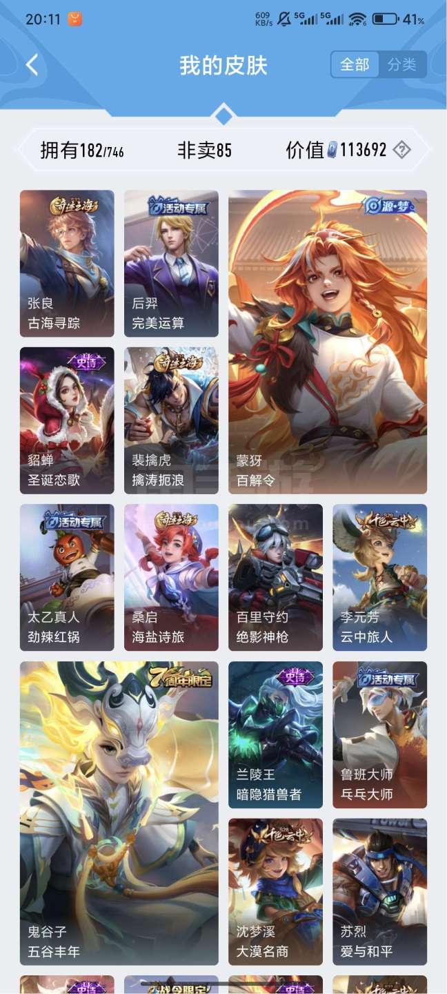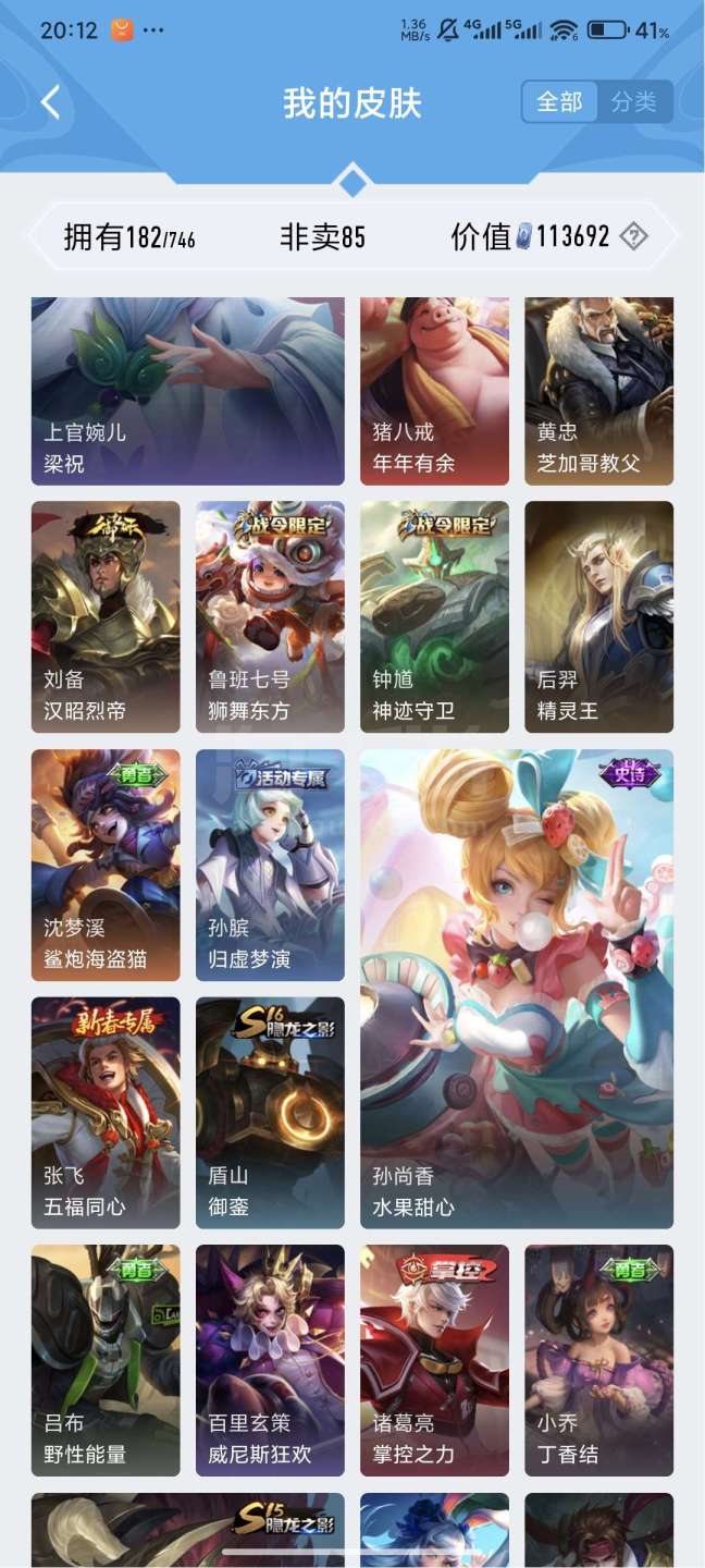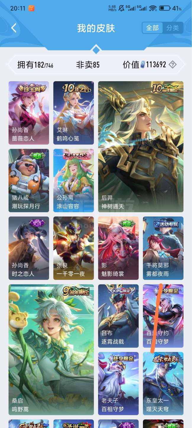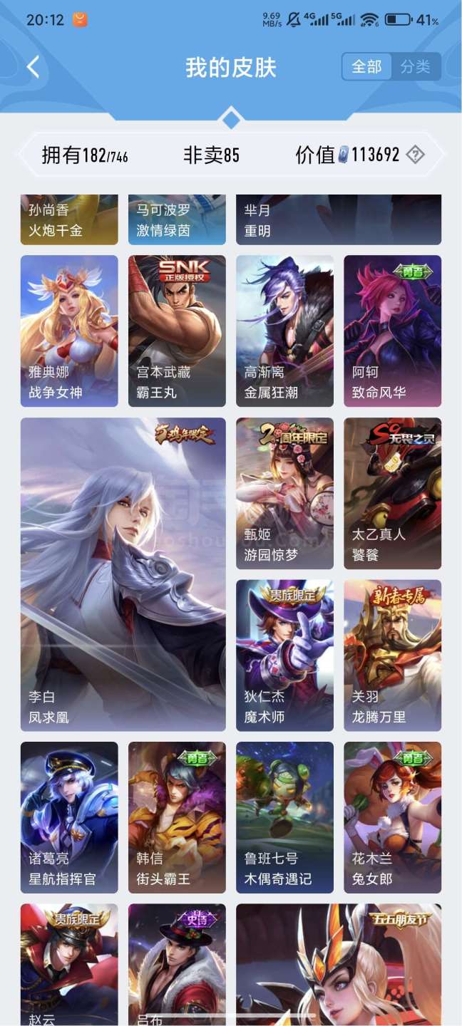 王者v7,121英雄182皮肤
