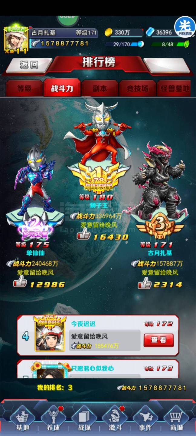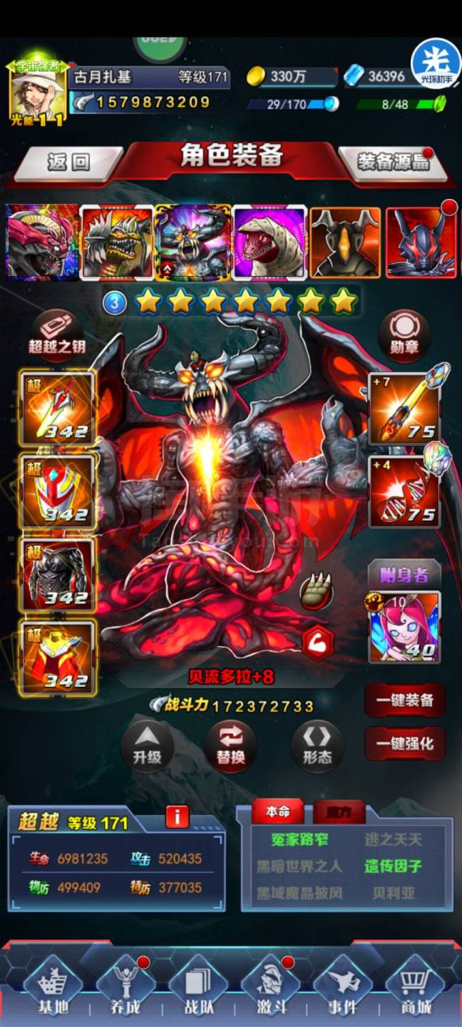 奥特曼系列OL【安卓4399】新区毕业妖龙突破被流,全服第三,第一警备队,警备队核心,潜力大