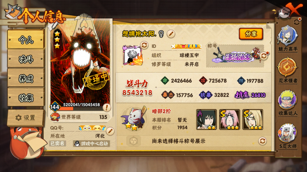 火影忍者【安卓QQ】854w战力白破绿牛21S+4个198直购A/34A+超哥碎