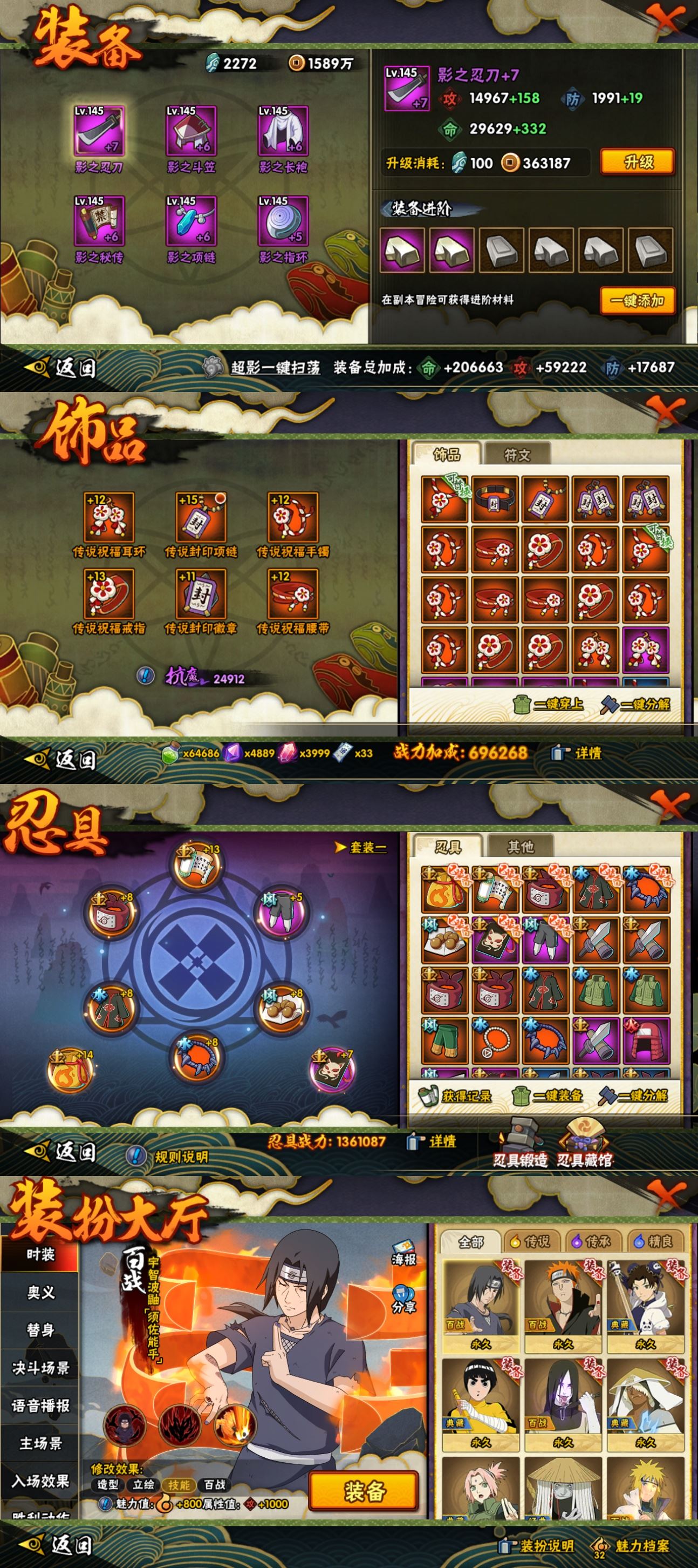 火影忍者【安卓QQ】15S忍/24A忍/战力647W/V9/区服1045【S忍者】艾「忍界大战」,大筒木桃式,宇智波斑「
