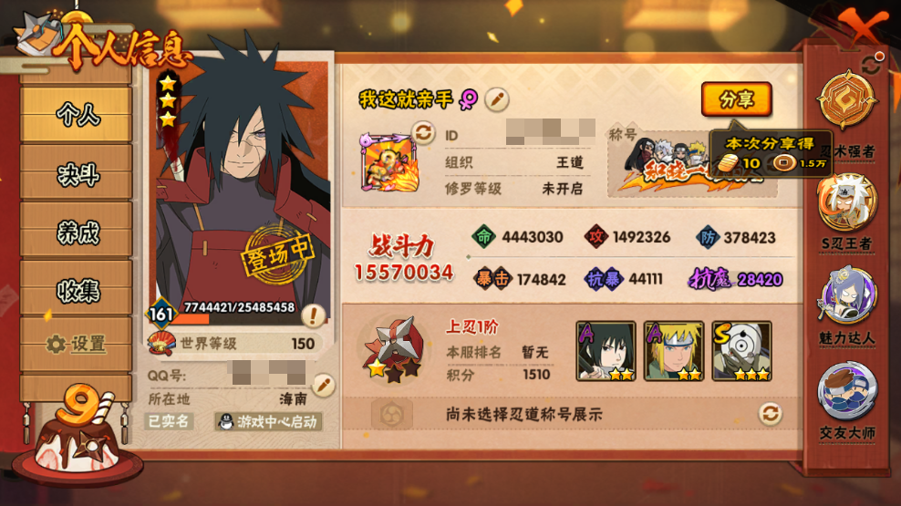 火影忍者【苹果QQ】1557w超哥带队41s+7直购59A+熊猫+80片小胡子战