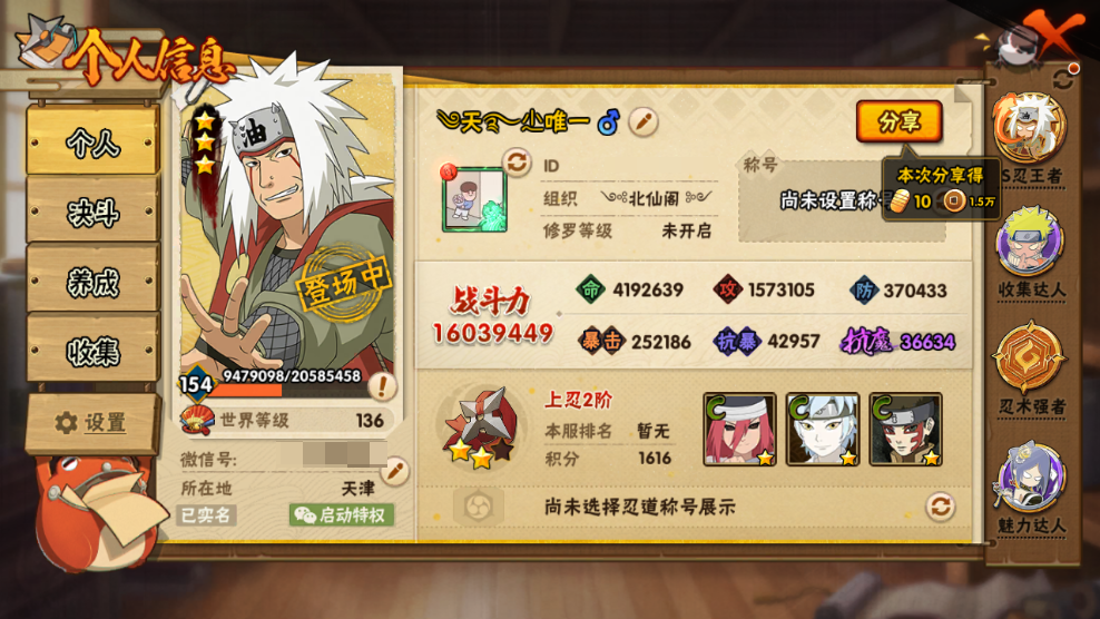 火影忍者【安卓微信】1603w白破超+创斑32s+17直购62A+3直购通灵+5