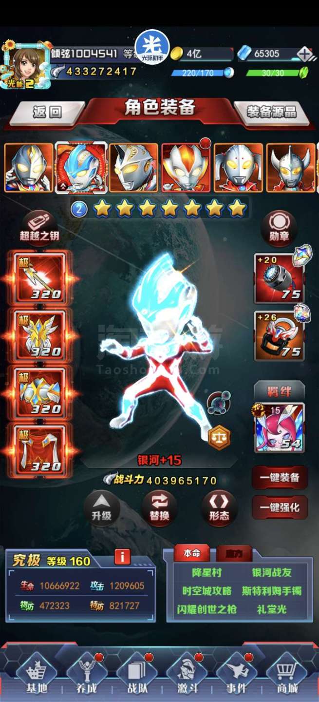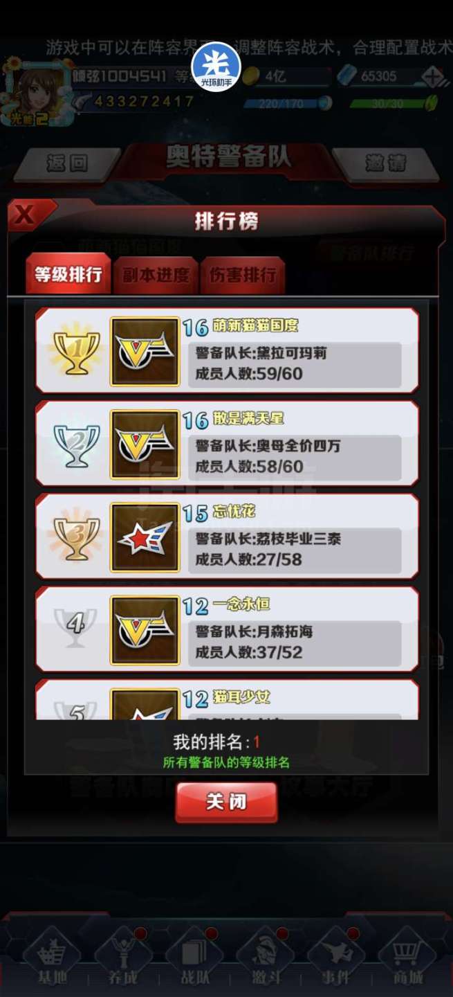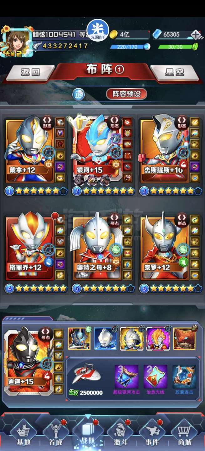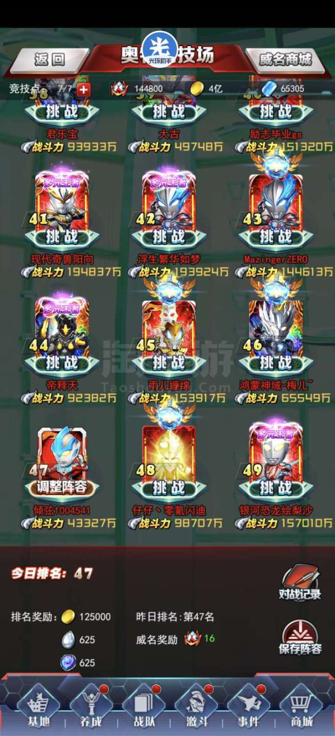 奥特曼系列OL【安卓QQ】GS新区4亿战力,竞技场前50名