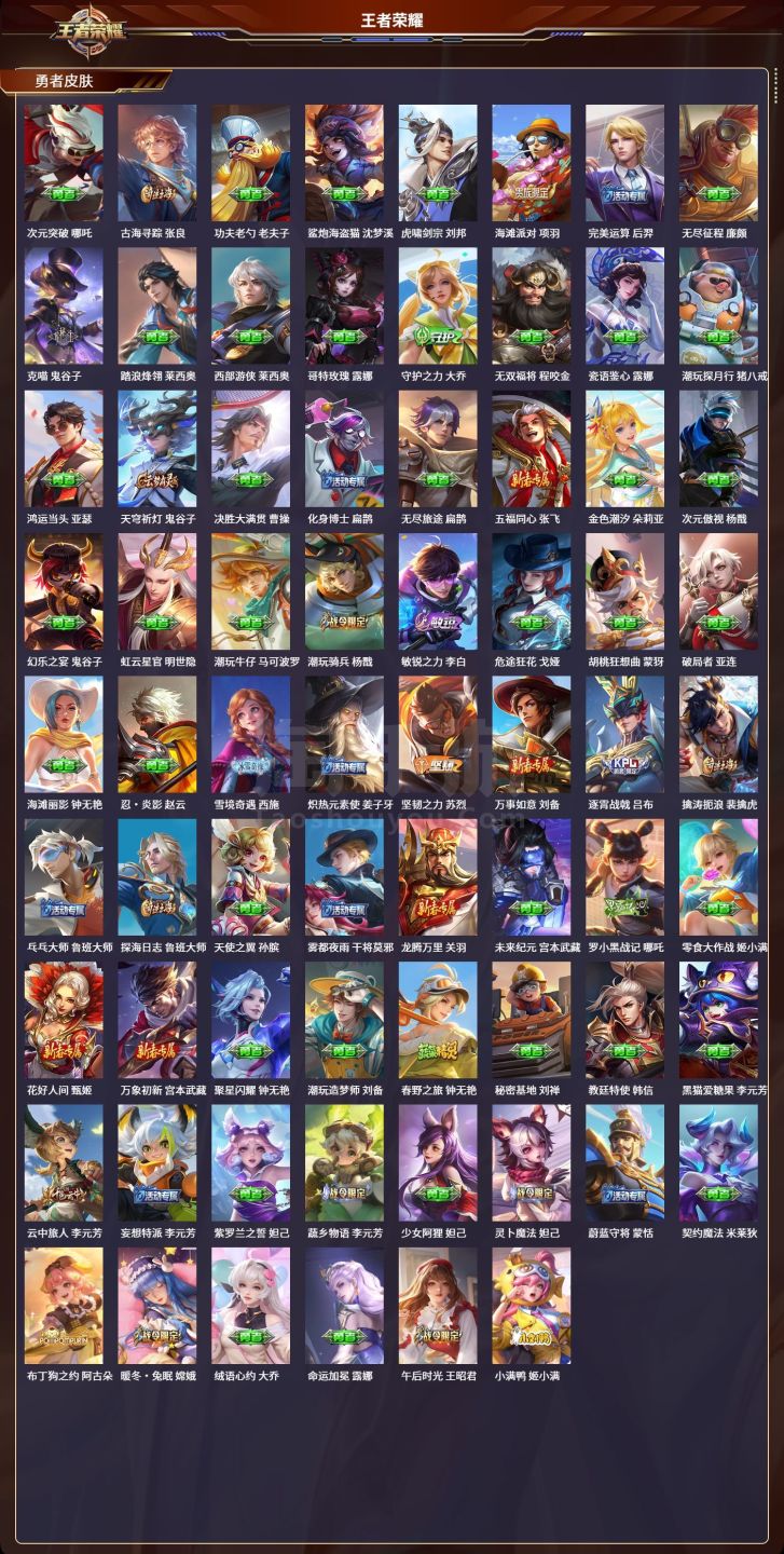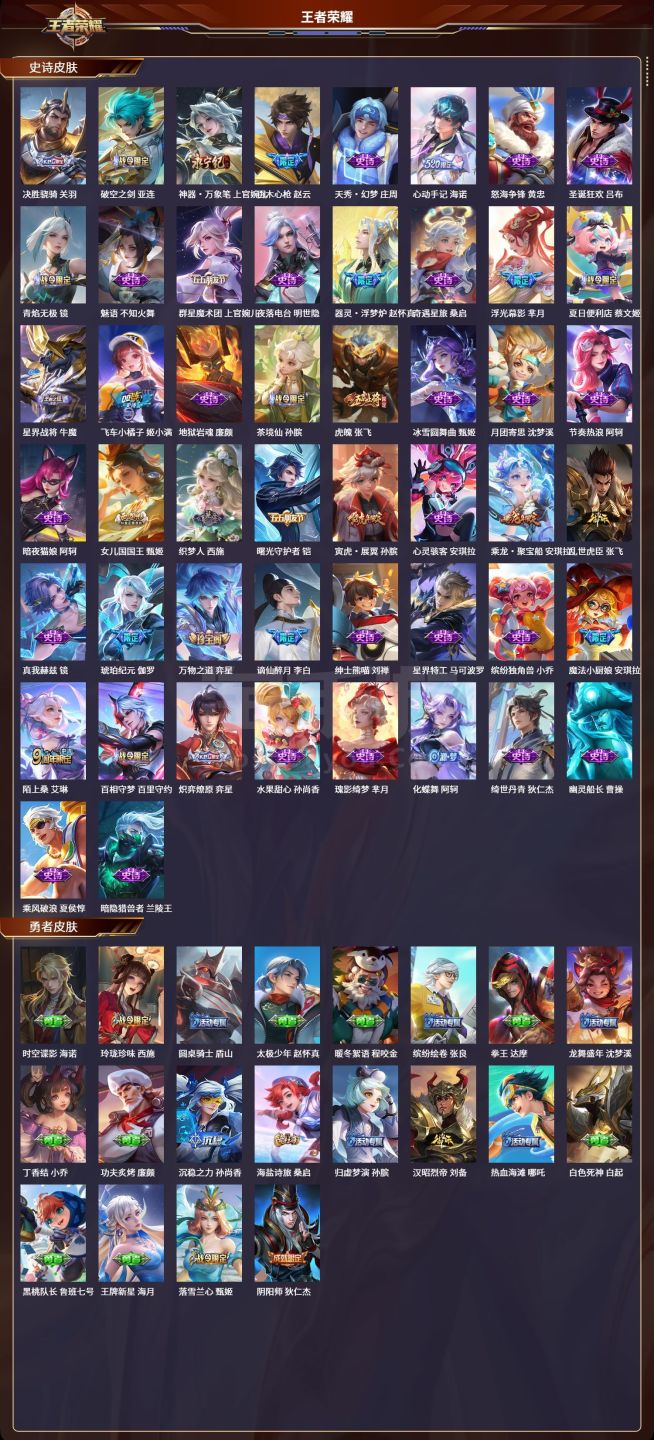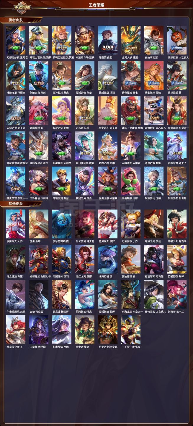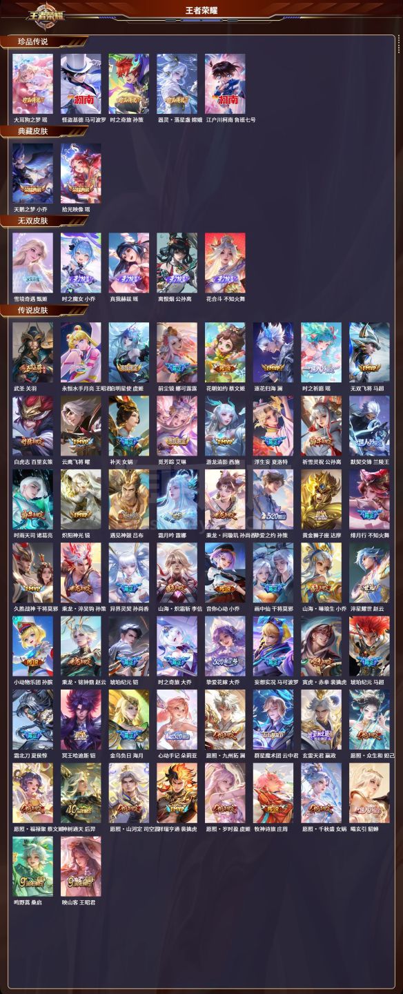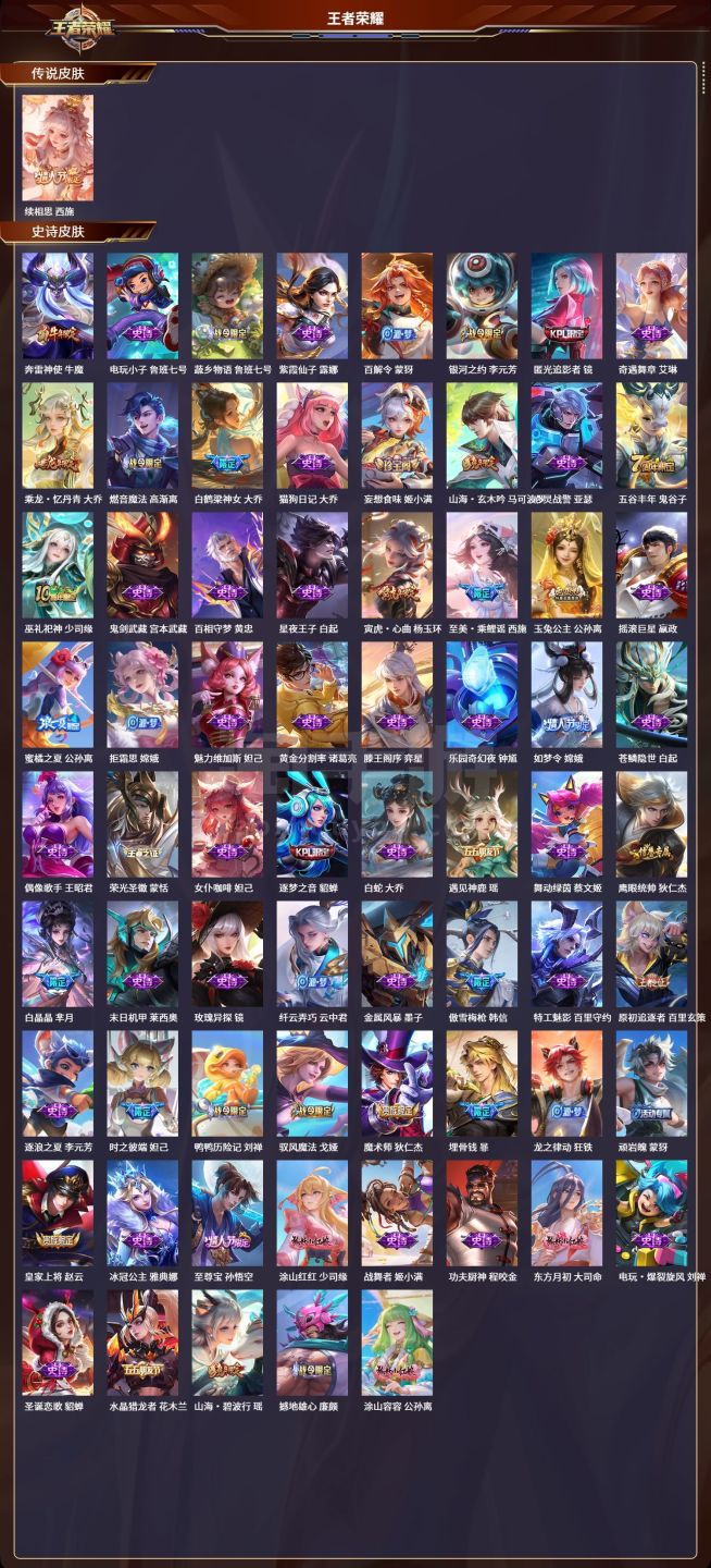 苹果QQ/至尊星耀/362皮肤/125英雄/2典藏/0珍品无双/5无双/5珍品传说/59传说/119