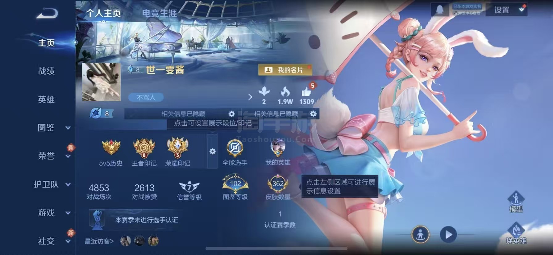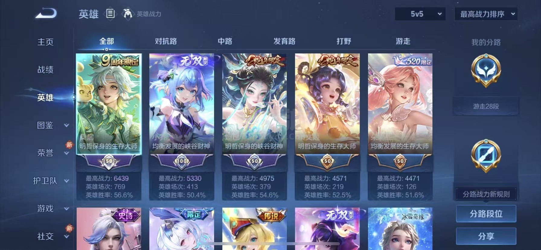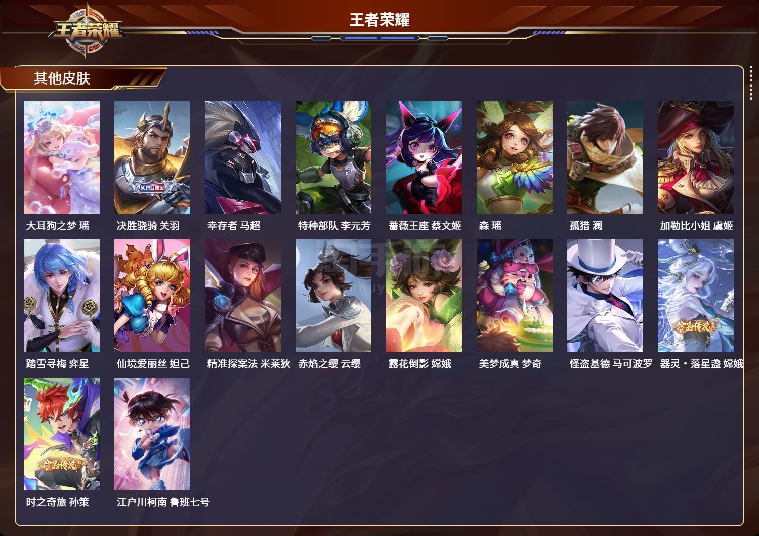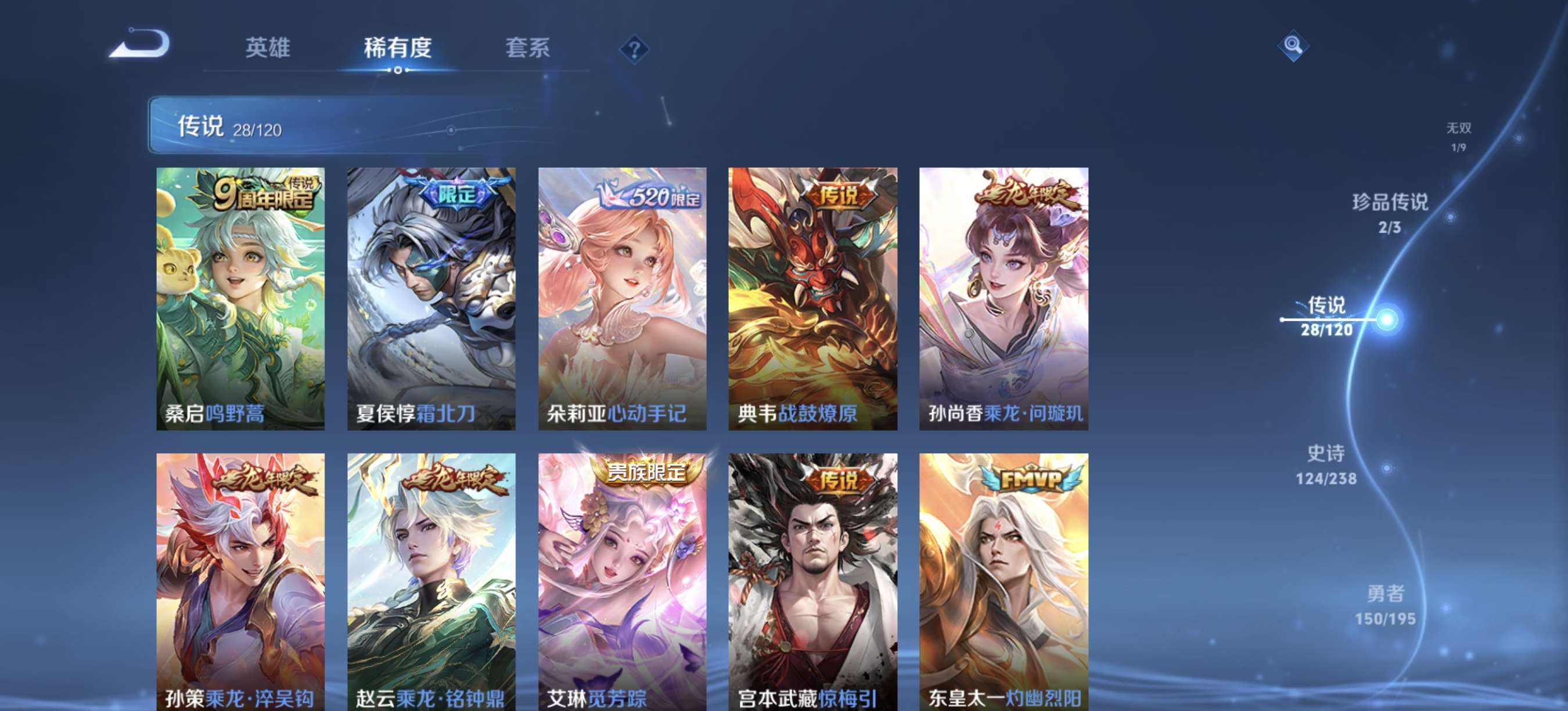 苹果QQ/至尊星耀/362皮肤/125英雄/2典藏/0珍品无双/5无双/5珍品传说/59传说/119