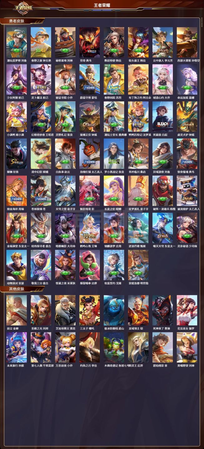 安卓QQ/永恒钻石/231皮肤/127英雄/0典藏/0珍品无双/0无双/5珍品传说/11传说/65史