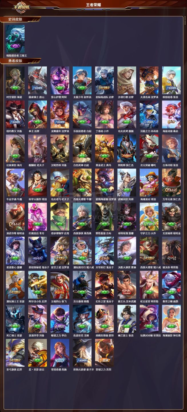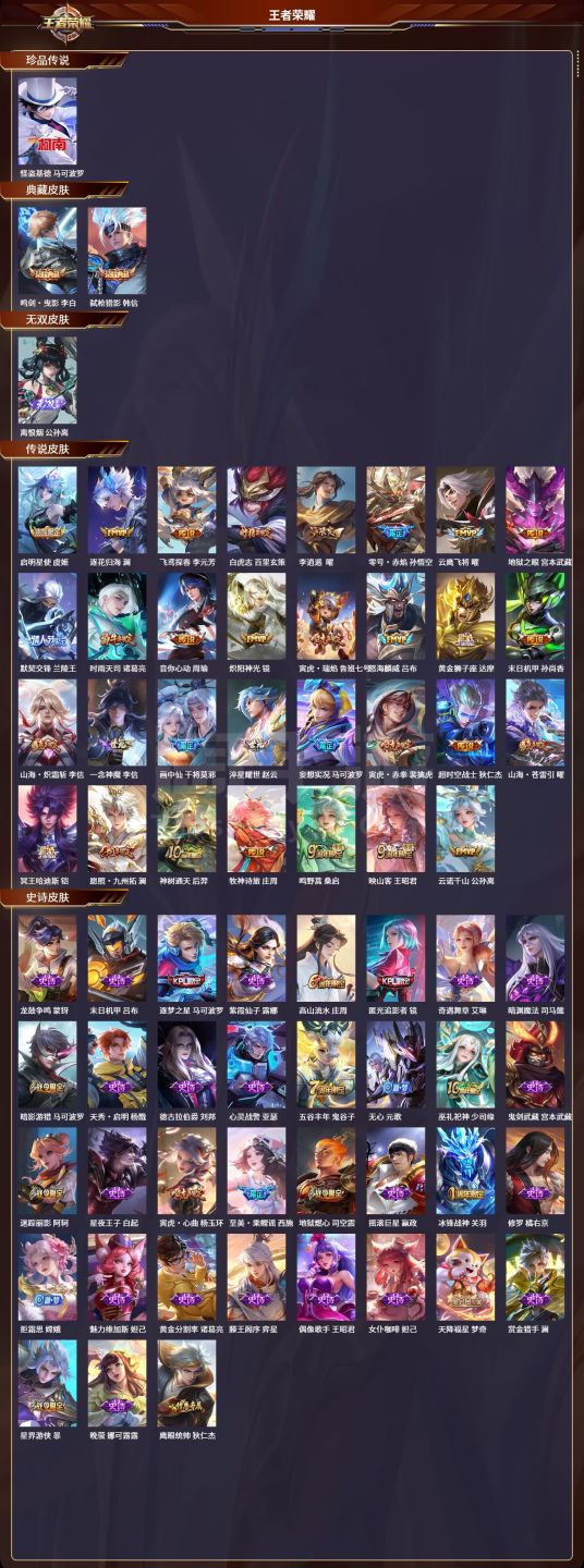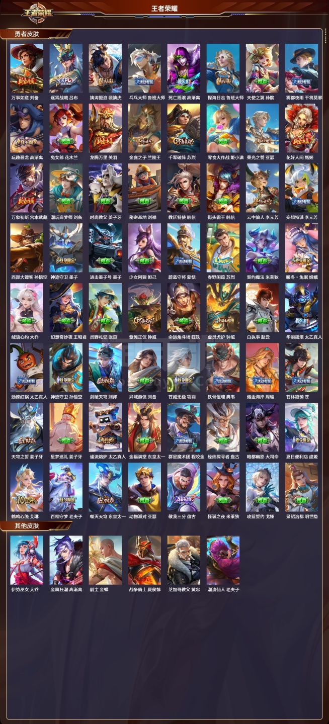 苹果QQ/非凡王者/344皮肤/127英雄/2典藏/0珍品无双/1无双/1珍品传说/31传说/106