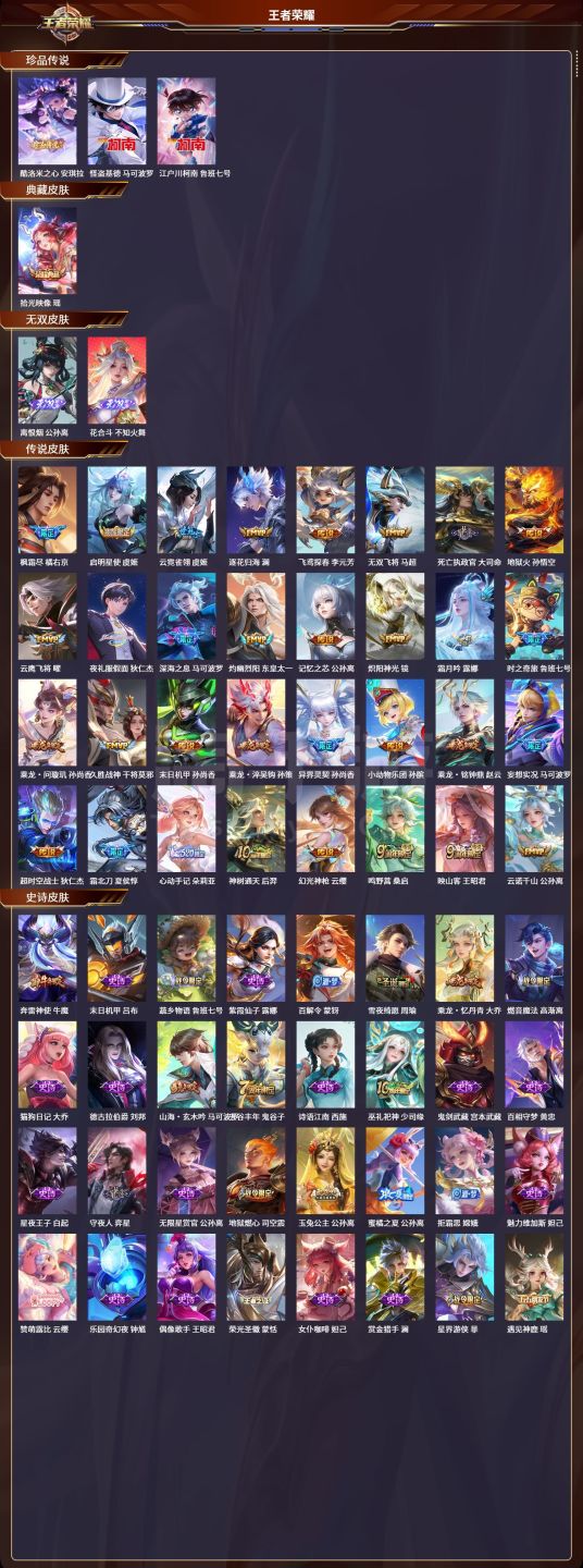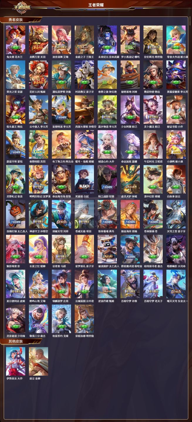 安卓QQ/无双王者/335皮肤/127英雄/1典藏/0珍品无双/2无双/3珍品传说/32传说/99史