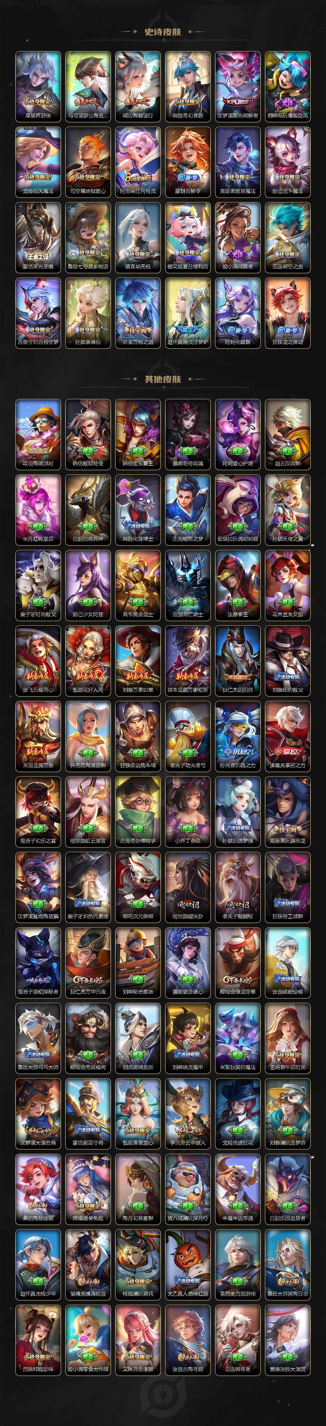 【英雄全皮】:李信全皮,蒙恬全皮,司空震全皮,戈娅全皮,影全皮