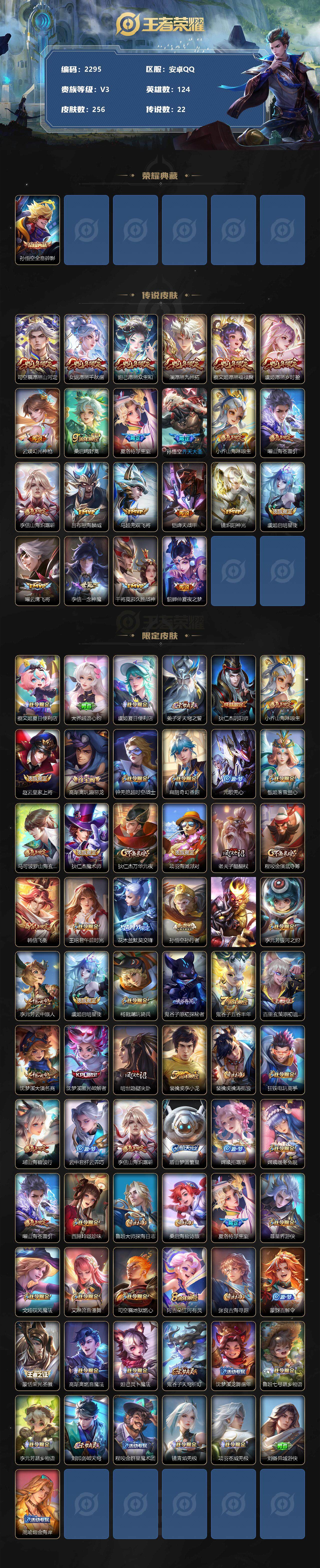 王者荣耀【安卓QQ】安卓Q-V3-尊贵铂金IV段位-124英雄-256皮肤-1典藏-0珍品无双-0