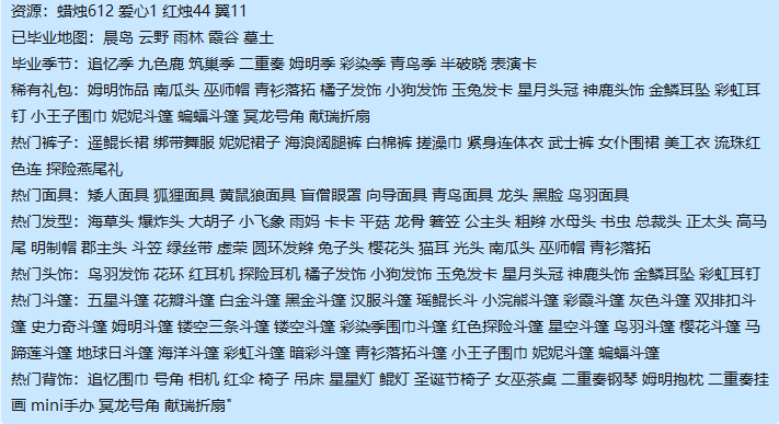 稀有礼包:姆明饰品 南瓜头 巫师帽 青衫落拓 橘子发饰 小狗发饰 玉兔发卡 星月头冠 神鹿头饰 金鳞耳坠 彩虹耳钉 小