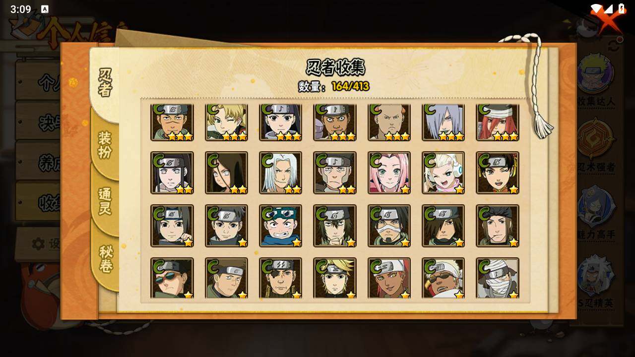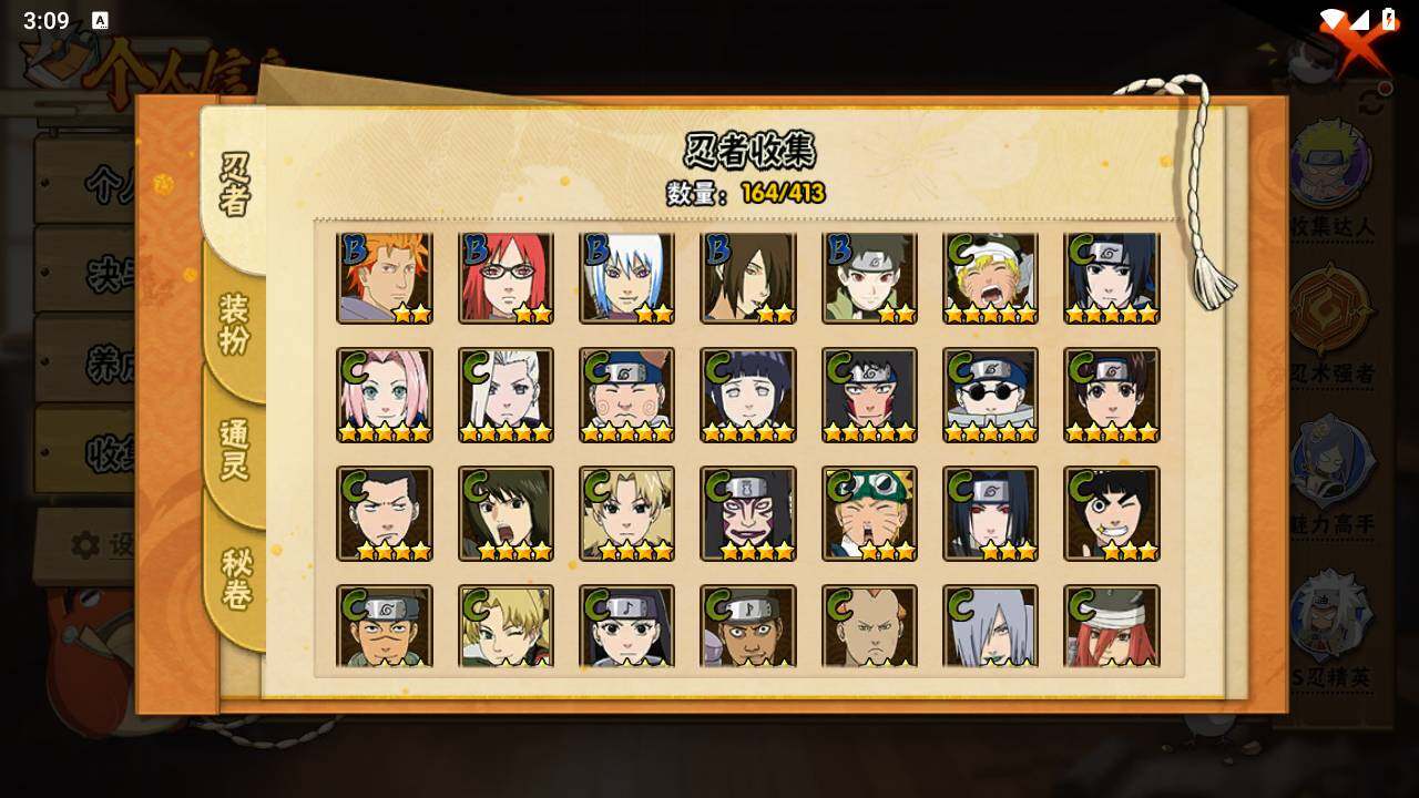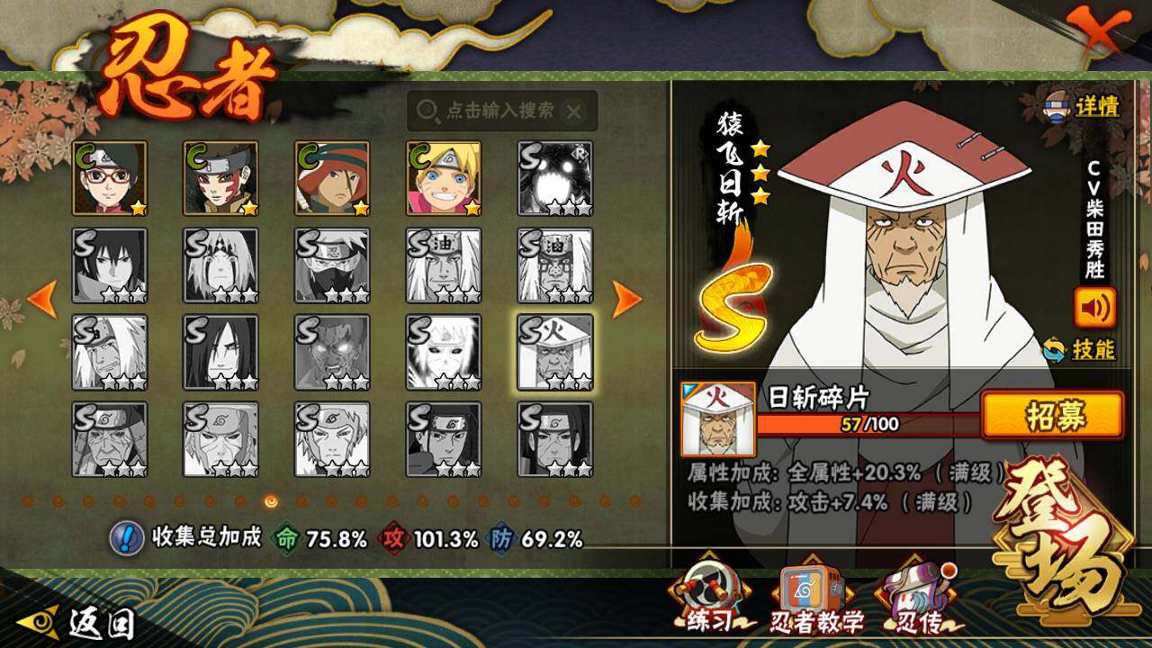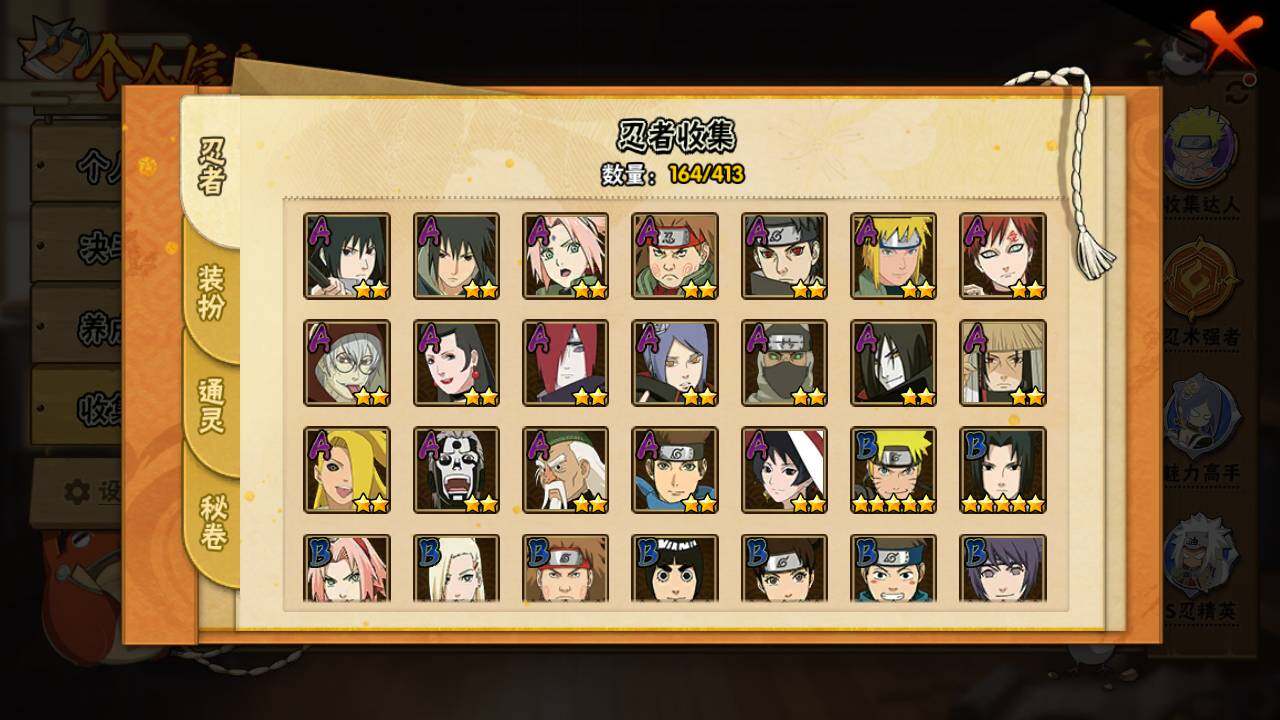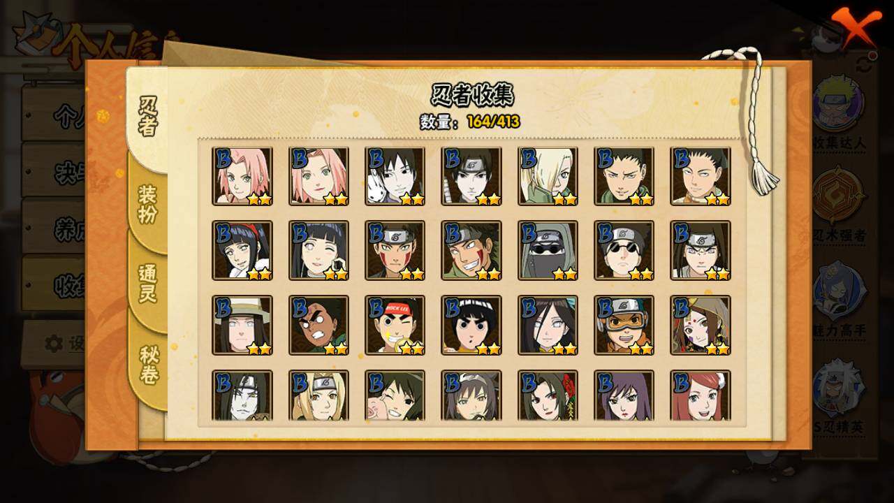 【S级忍者】:长门「秽土转生」(3星),波风水门「秽土转生」(3星),宇智波斑「秽土转生」(3星),宇智波鼬「须佐能乎」(3星),艾「三代目雷影」(3星),自来也「舞之豪杰」(3星),纲手(3星),纲手「百豪」(3星),波风水门(3星),药师兜「仙人模式」(3星),漩涡鸣人「九喇嘛连结