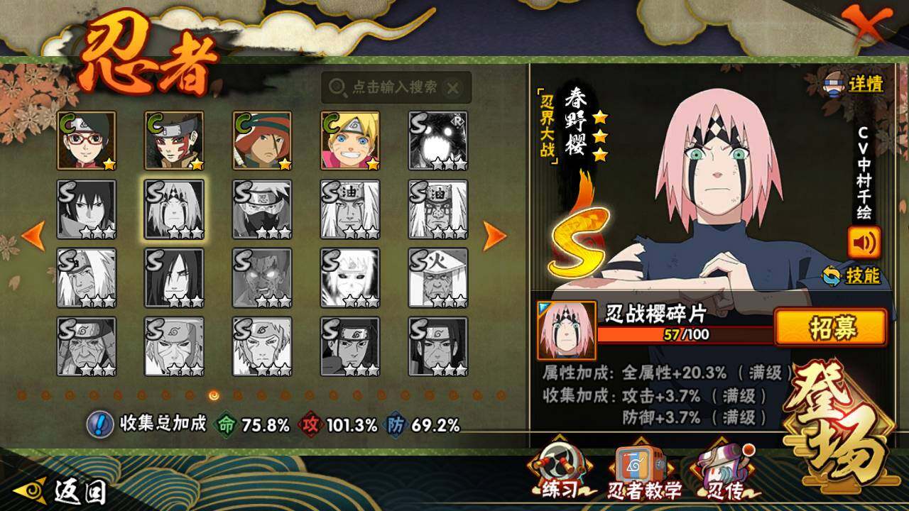 V10 660万战力 13S-27A 忍战樱57片 九喇嘛水门52片 日斩57片 秽土半藏83片 LL5331