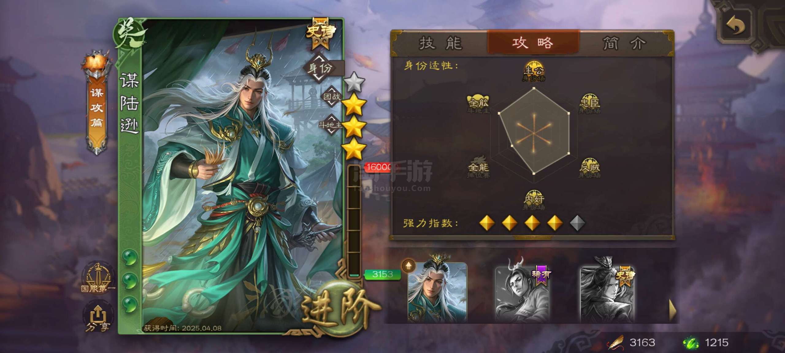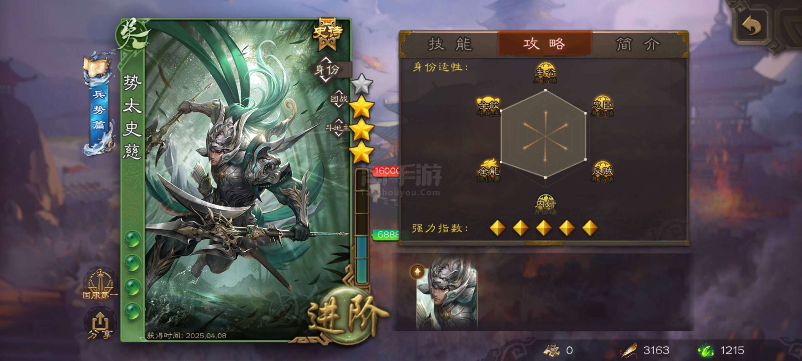 三国杀【安卓官方】势太史慈+谋陆逊+许攸+骆统等7史诗精品中军将军!10宝珠,精品强将多,游卡官服字母格式活绑