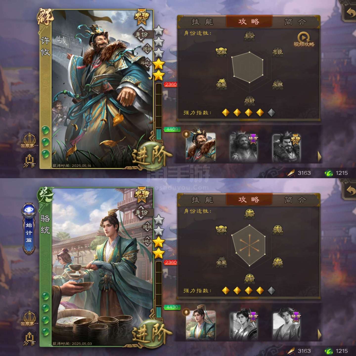 势太史慈+谋陆逊+许攸+骆统等7史诗精品中军将军!10宝珠,精品强将多,游卡官服字母格式活绑