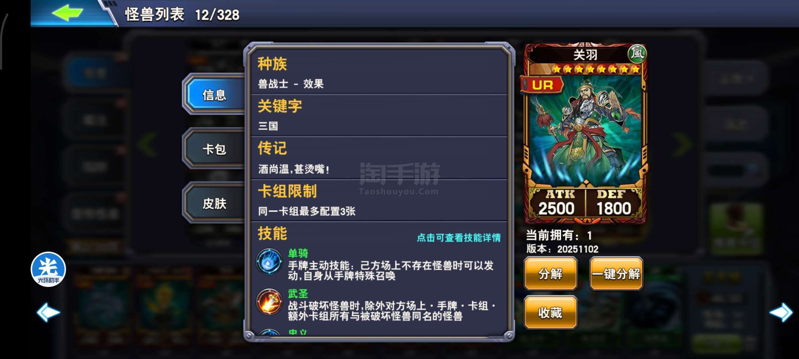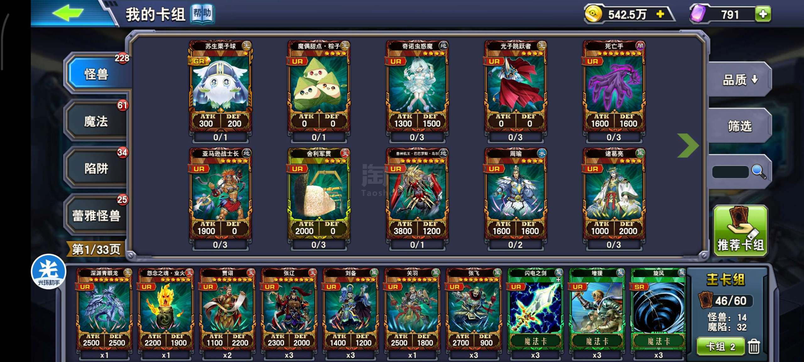 三国有关羽,孙权,满华容道,同盟,两周瑜,满诸葛亮,两贾诩,三顾茅庐,满草船等,大量三国卡牌