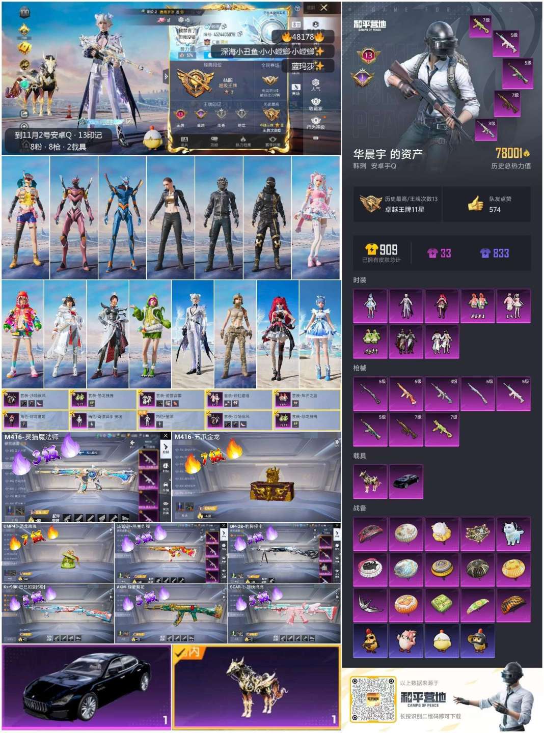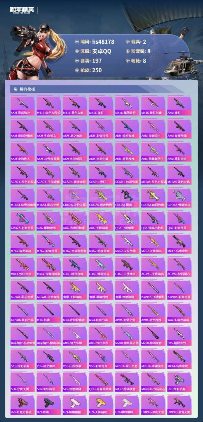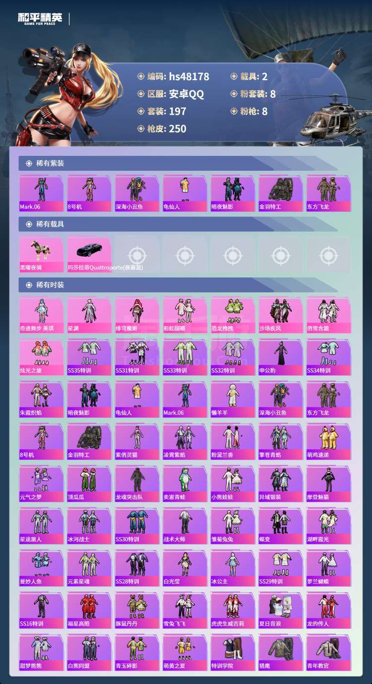 hs48178 安卓手Q-13王牌印记-8粉装-8特效枪-2载具-78001热力值-197套装-25