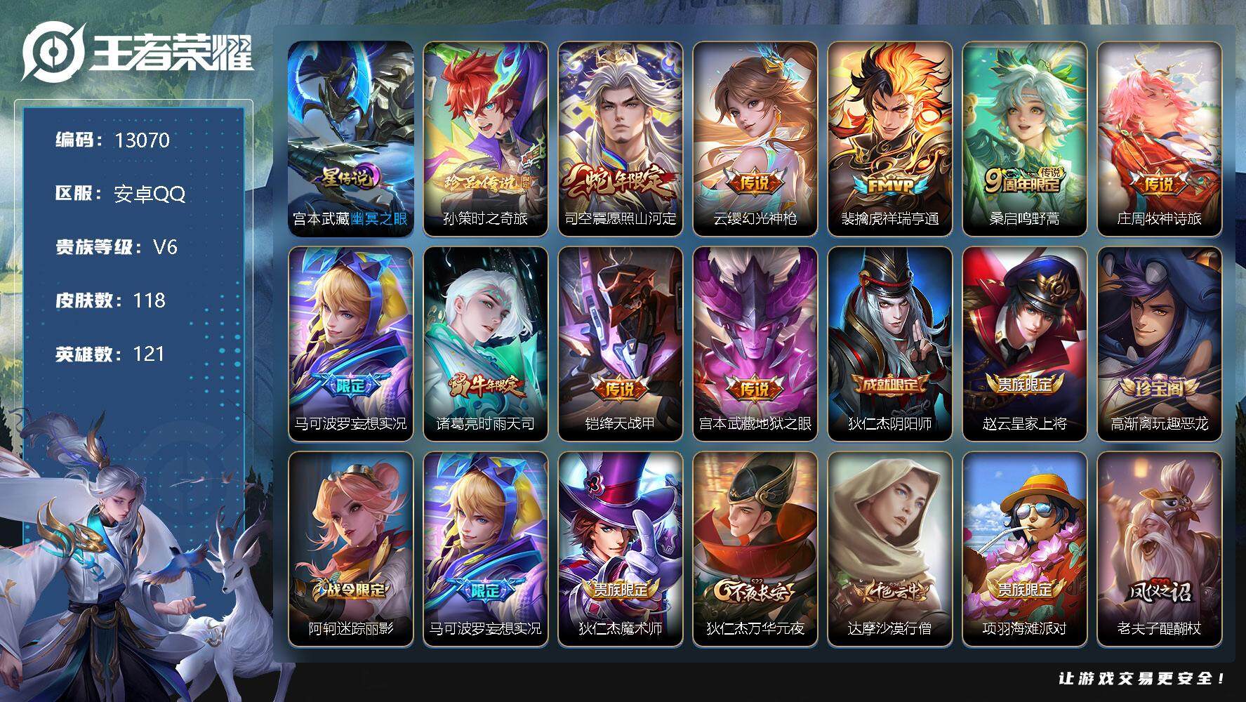 营地账号:1885072512/可换绑 【金标程咬金 孙策珍品 时雨天司】 6按键 1星传说,4王者印记,五级铭文160,kk3692,可二次,安卓Q-V6-118皮肤-1珍品传说-9传说-30史诗【英雄全皮】:影全皮【珍品传说】:孙策时之奇旅【星元皮肤】:宫本武藏幽冥之眼【传说皮肤】:司空震愿照山河定,云缨幻光神枪,裴擒虎祥瑞亨通,桑启鸣野蒿,庄周牧神诗旅,马可波罗妄想实况,诸葛亮时雨天司,铠