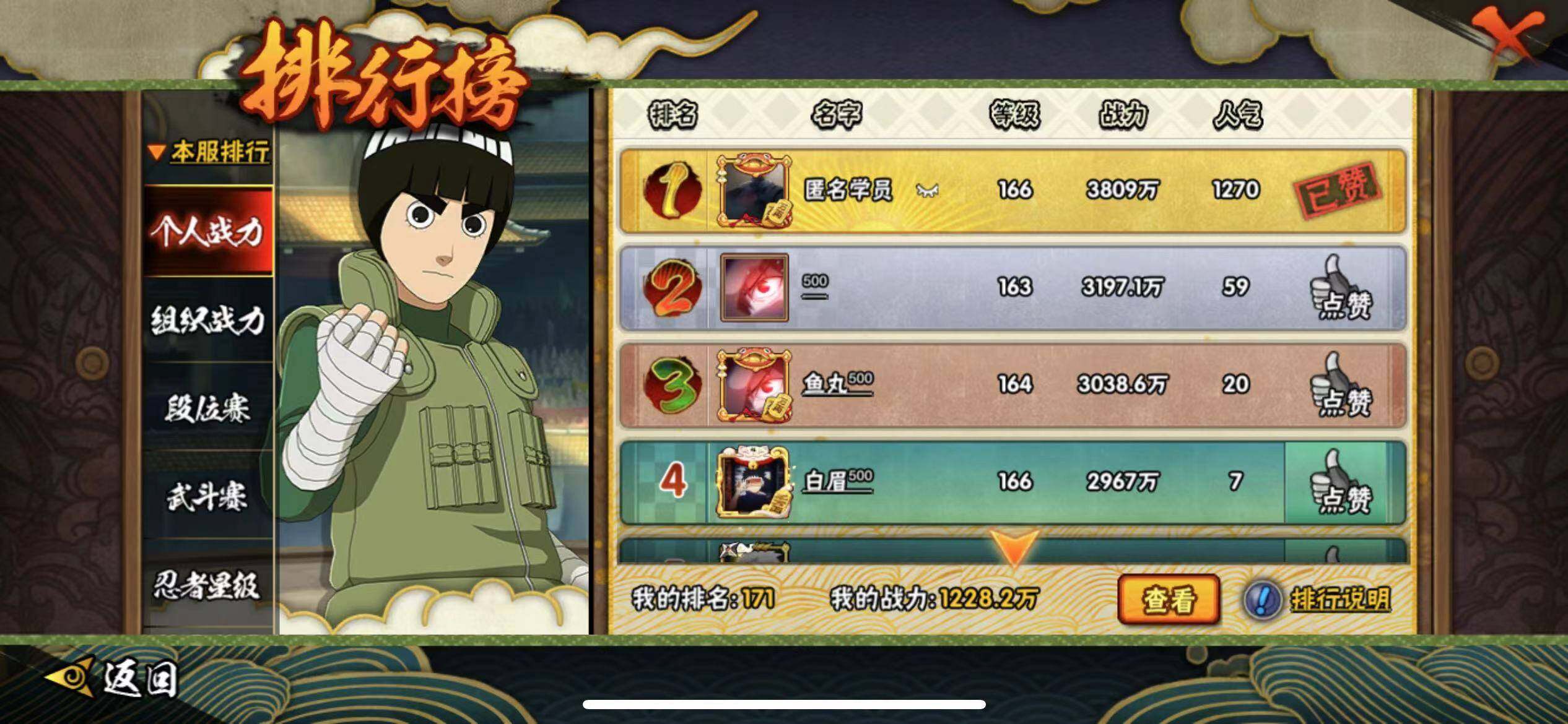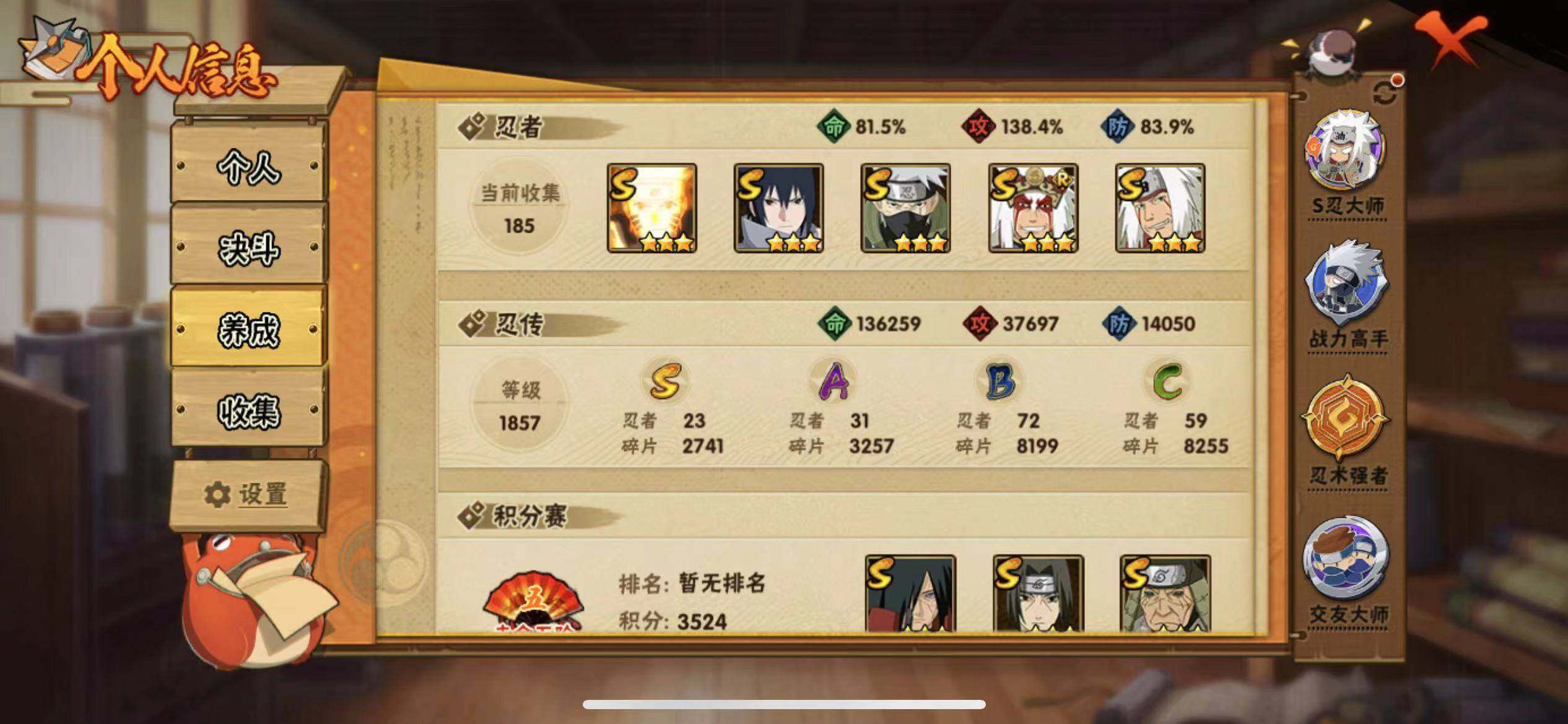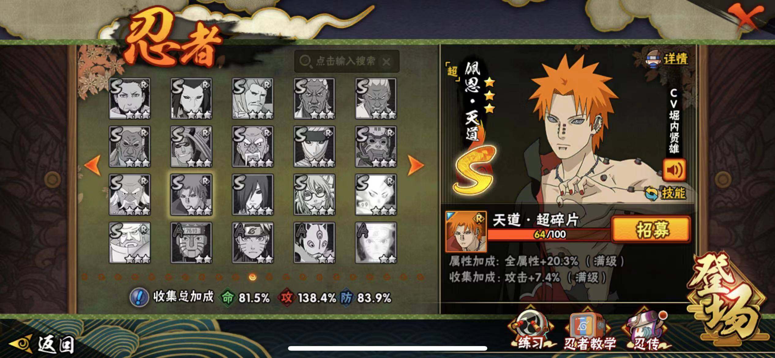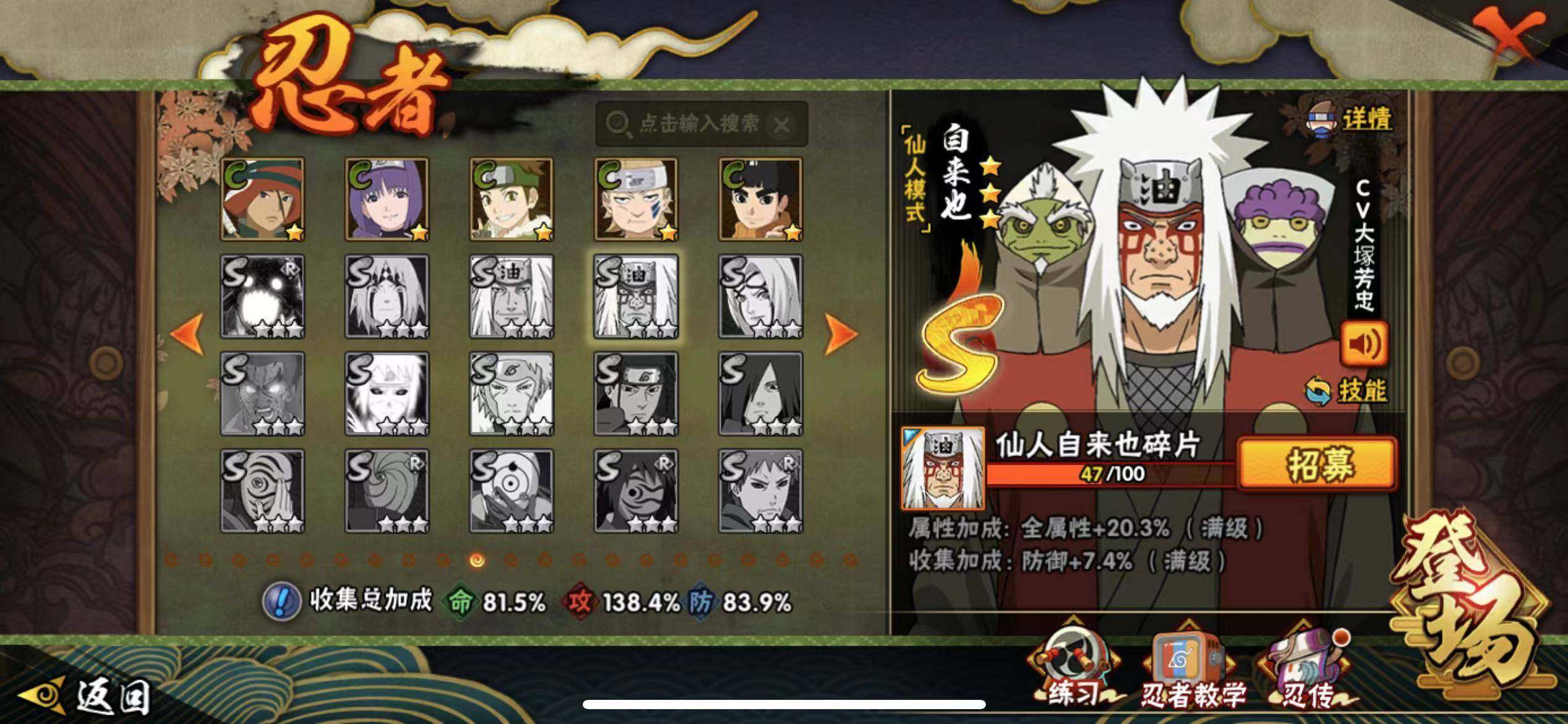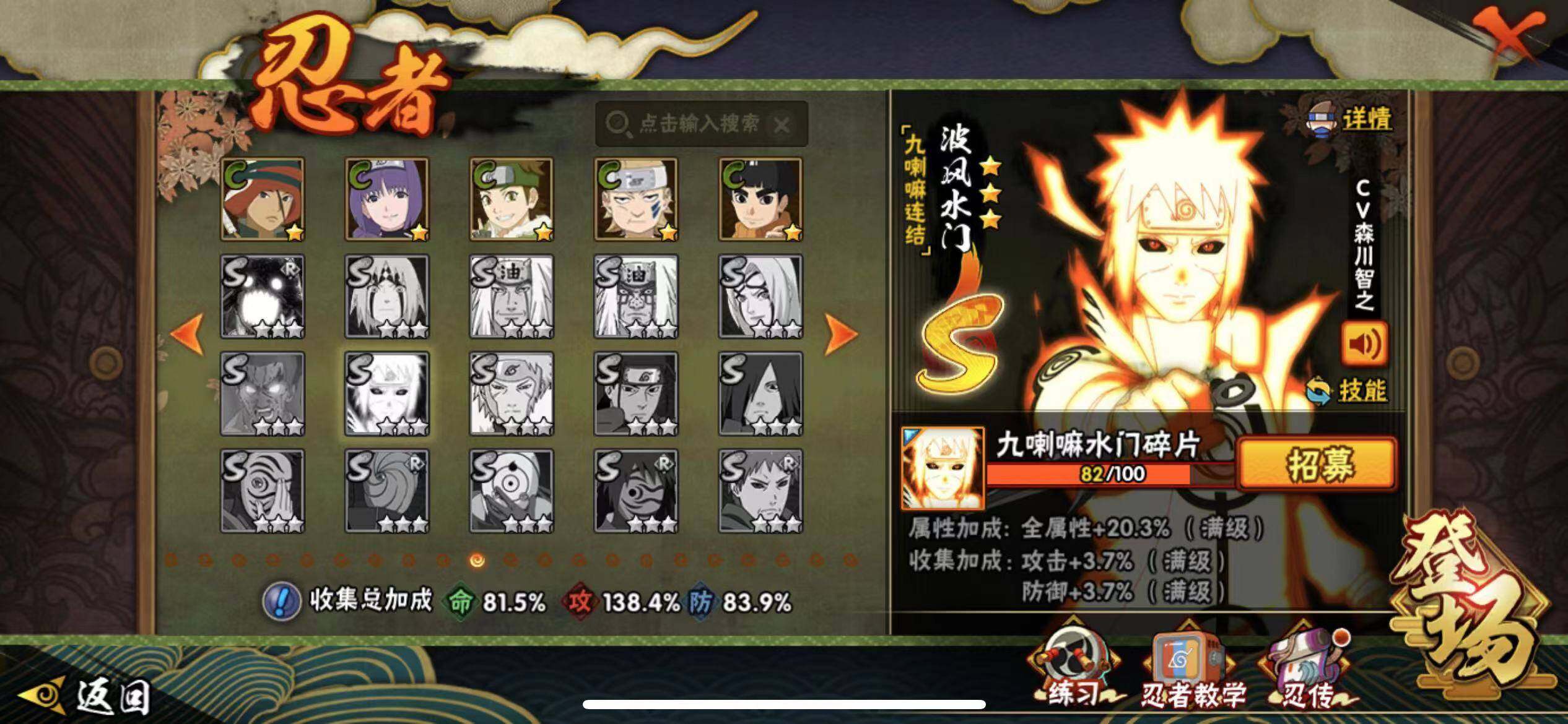 V9/1228万战力/总忍者185/23S/31A/须佐止水/创立柱间/创立斑/大筒木桃式/须佐卡卡西/传说自来也/忍战带土/秽土水门/秽土扉间/秽土柱间/秽土斑/秽土解斑/秽土鼬/秽土日斩/九喇嘛鸣人/永恒佐助/秽土再不斩/真容卡卡西/19通灵/41密卷/1.6千金币/九喇嘛水门82片/天道超64片