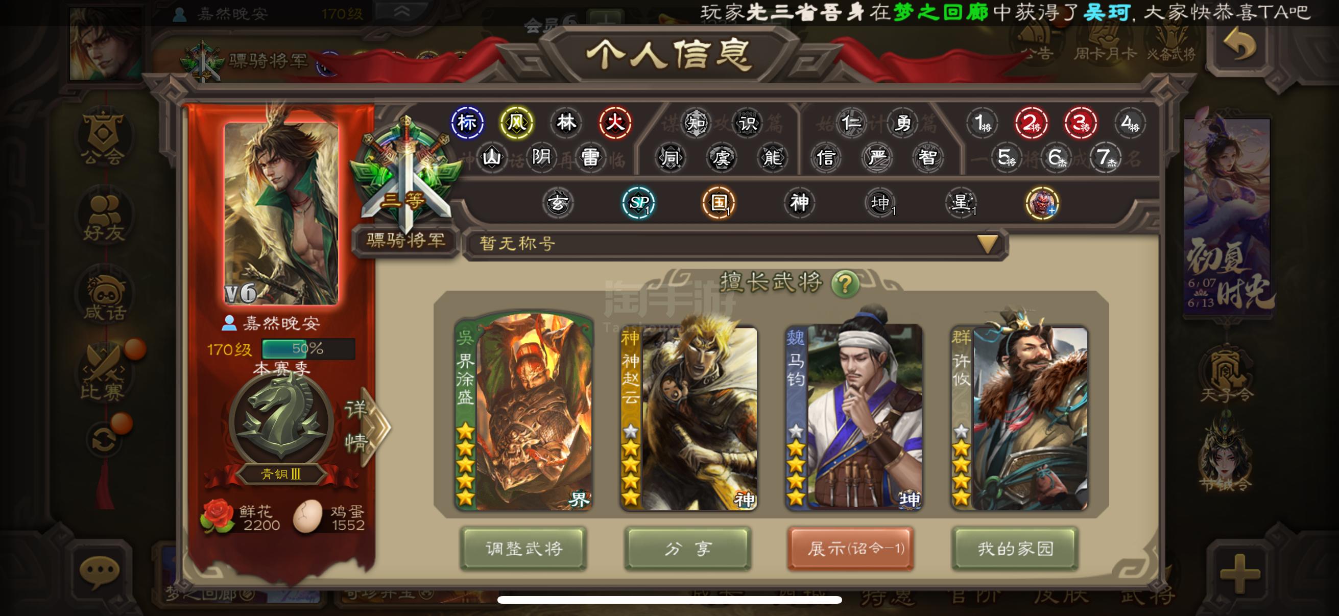 三国杀移动版【安卓官方】可换绑 乌鸦钟会 4星曹髦 星黄忠 沙摩柯 鲍信 阎象6000将魂 50000羽毛