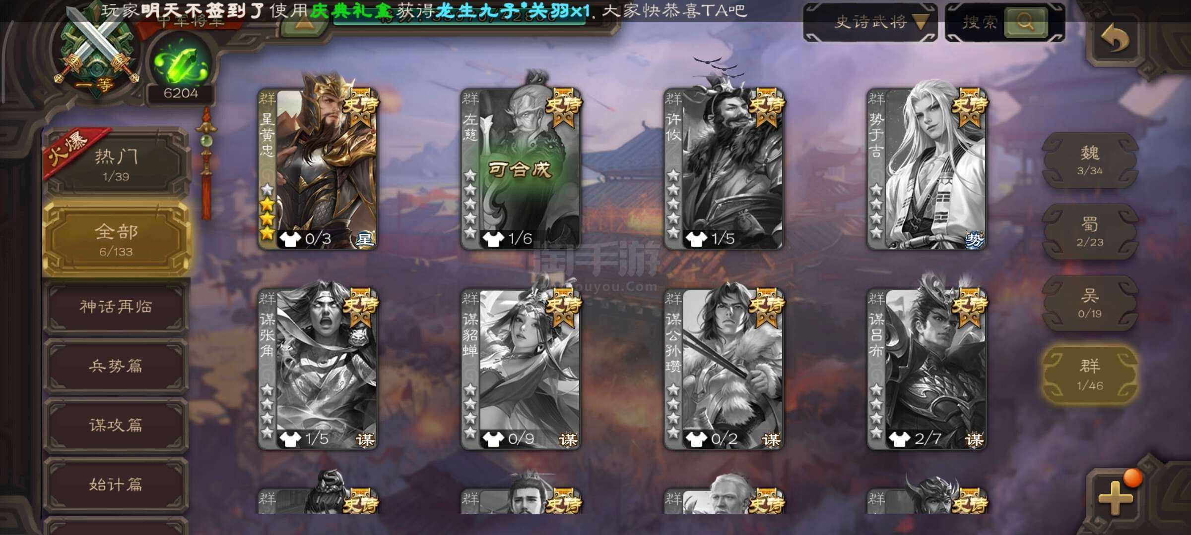 史诗武将数量: