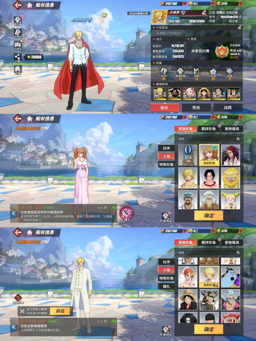 航海王热血航线【安卓OPPO】竞技场59传奇8强者 文山婚礼皮肤 布琳友情技 四皇黑胡子 十字公会老沙 大和 和路 魔神山治 基德
