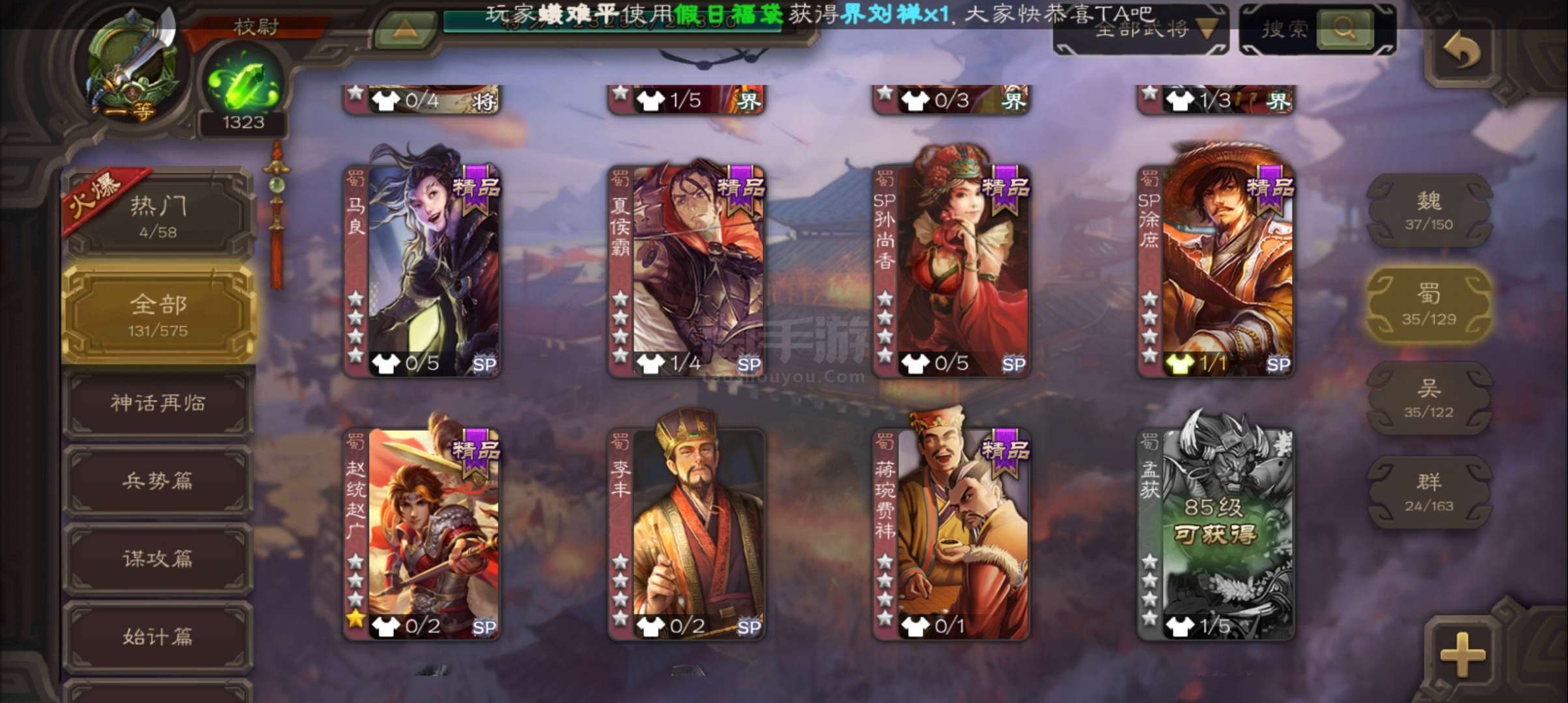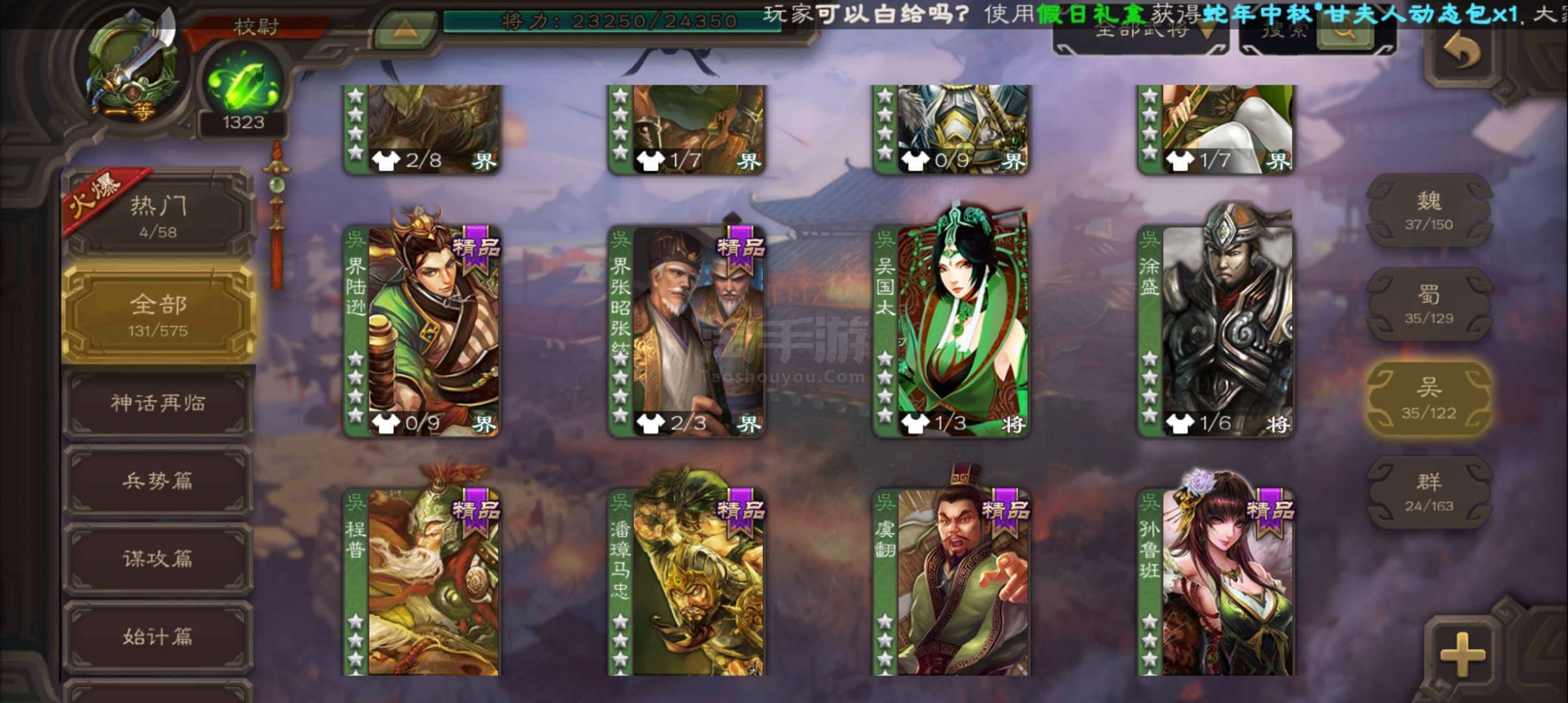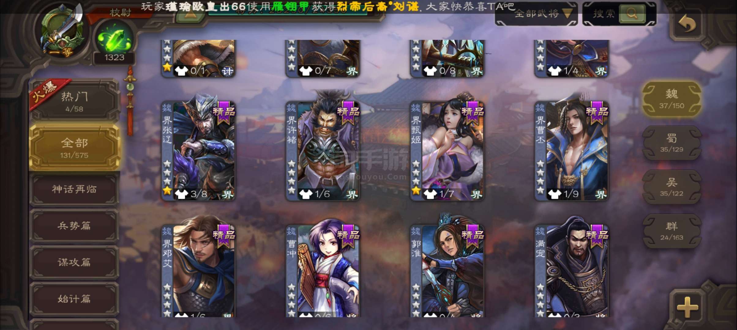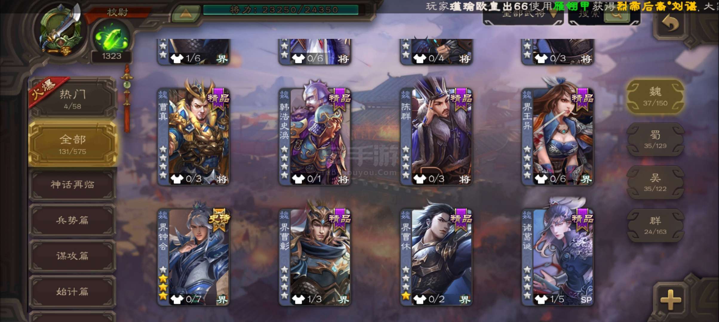 史诗武将数量: