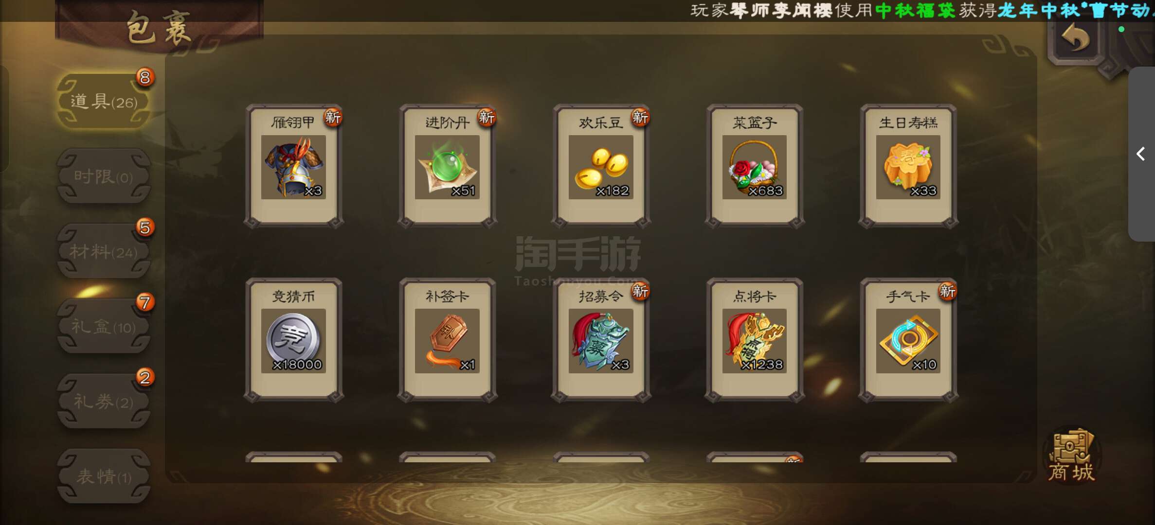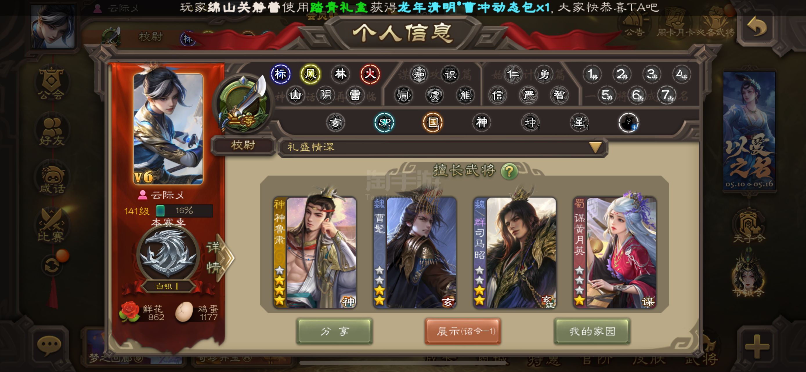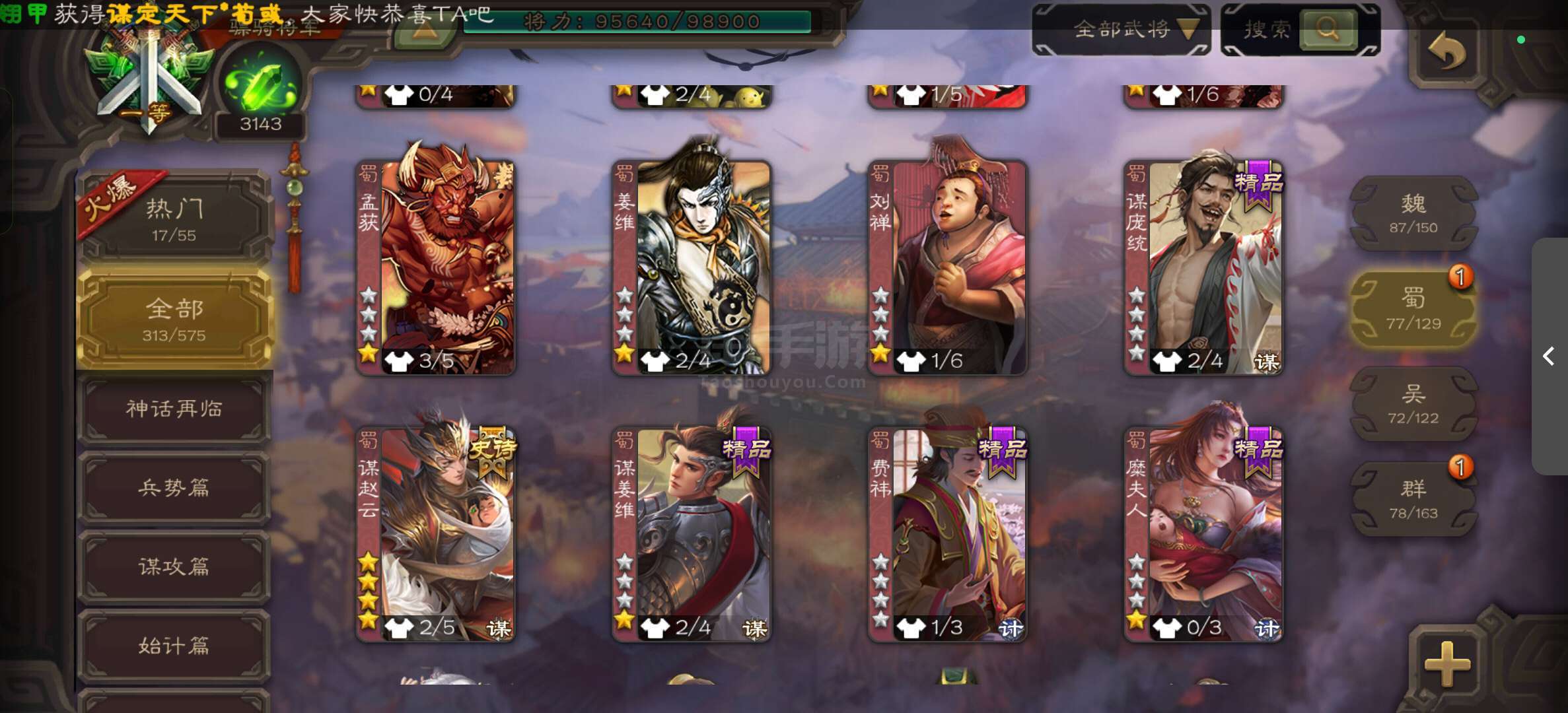元宝树满级,还有6000多元宝,20000多斗地主票子,动皮可以看图,史诗武将可看图