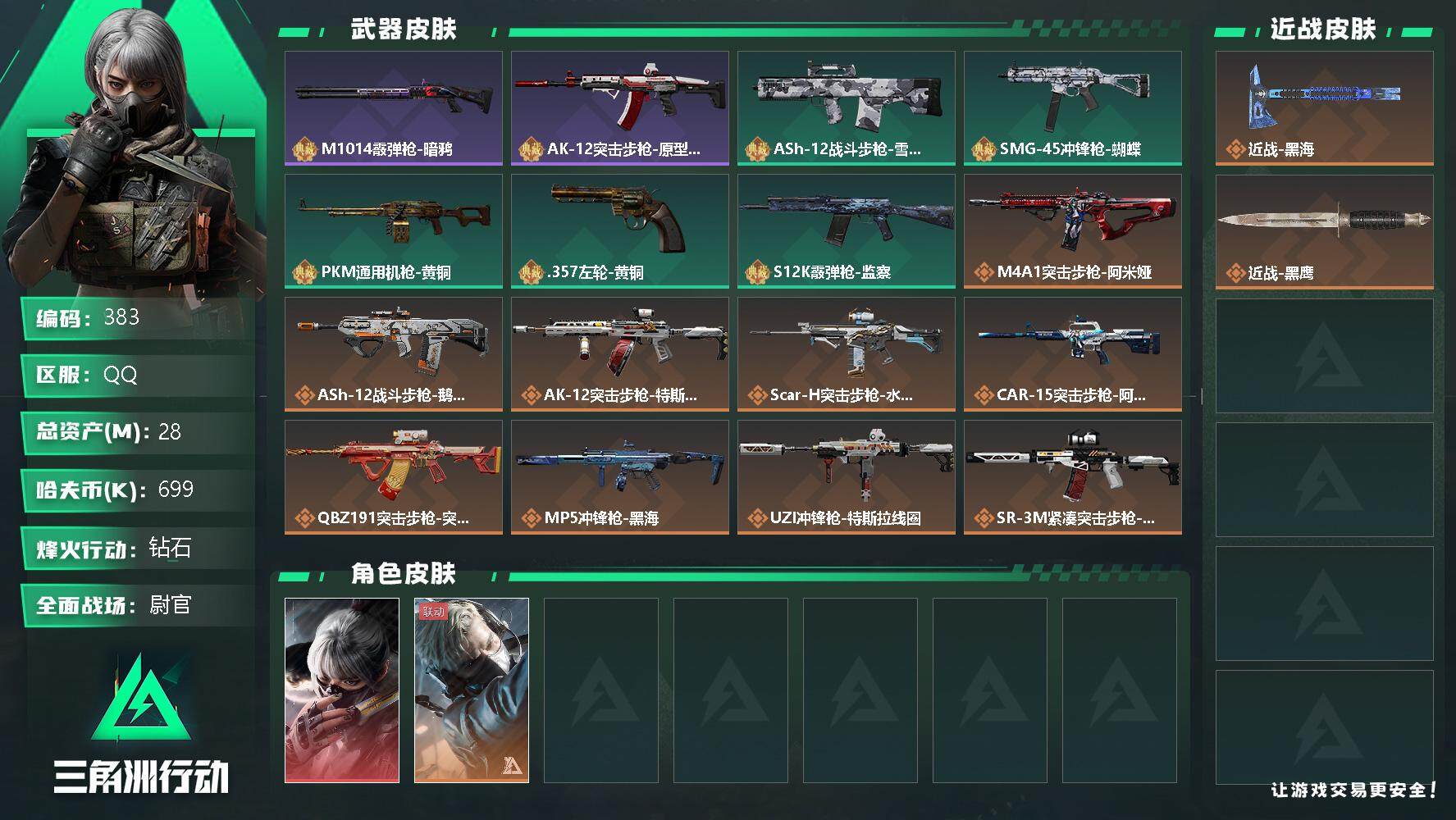 三角洲行动【苹果QQ】28M总资产-麦晓雯水墨云图-黑海捆绑包-蜂医无题密令-6体5负6仓库