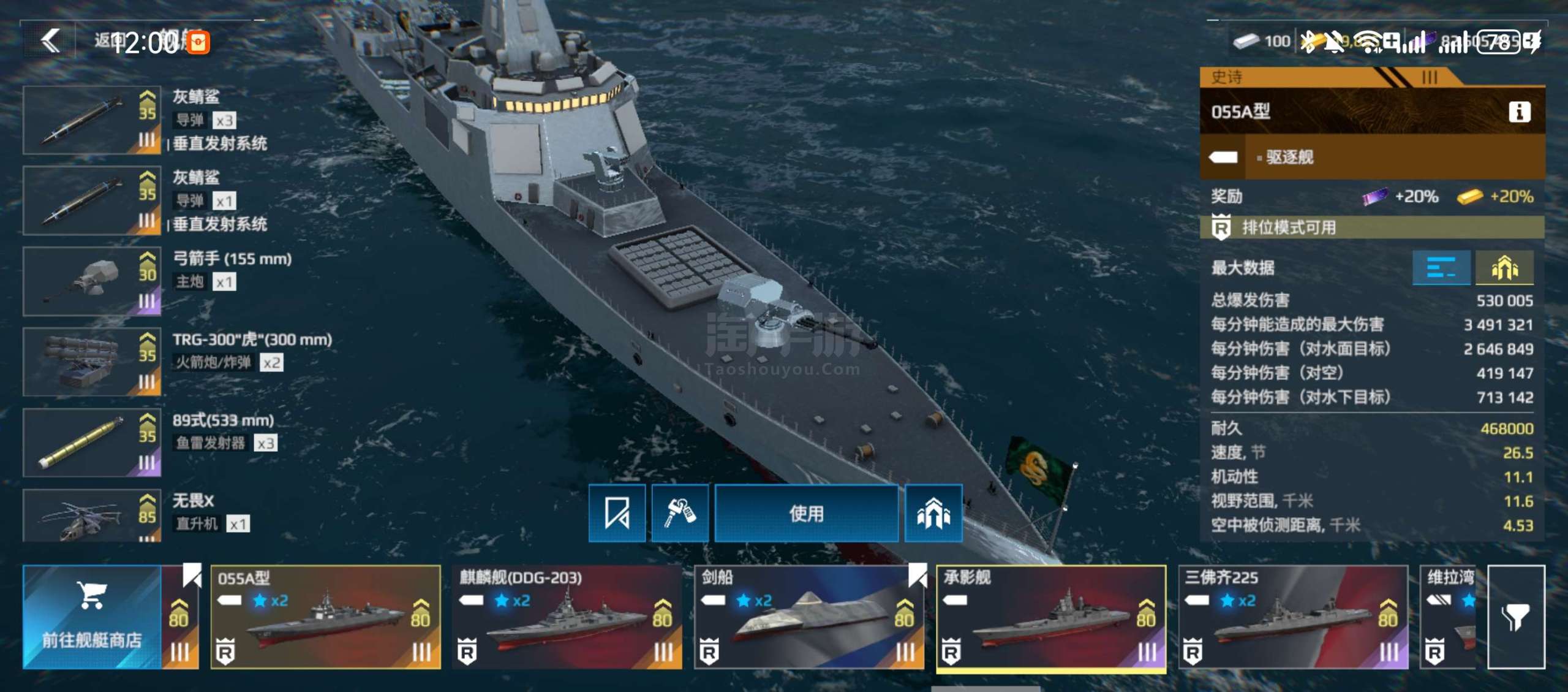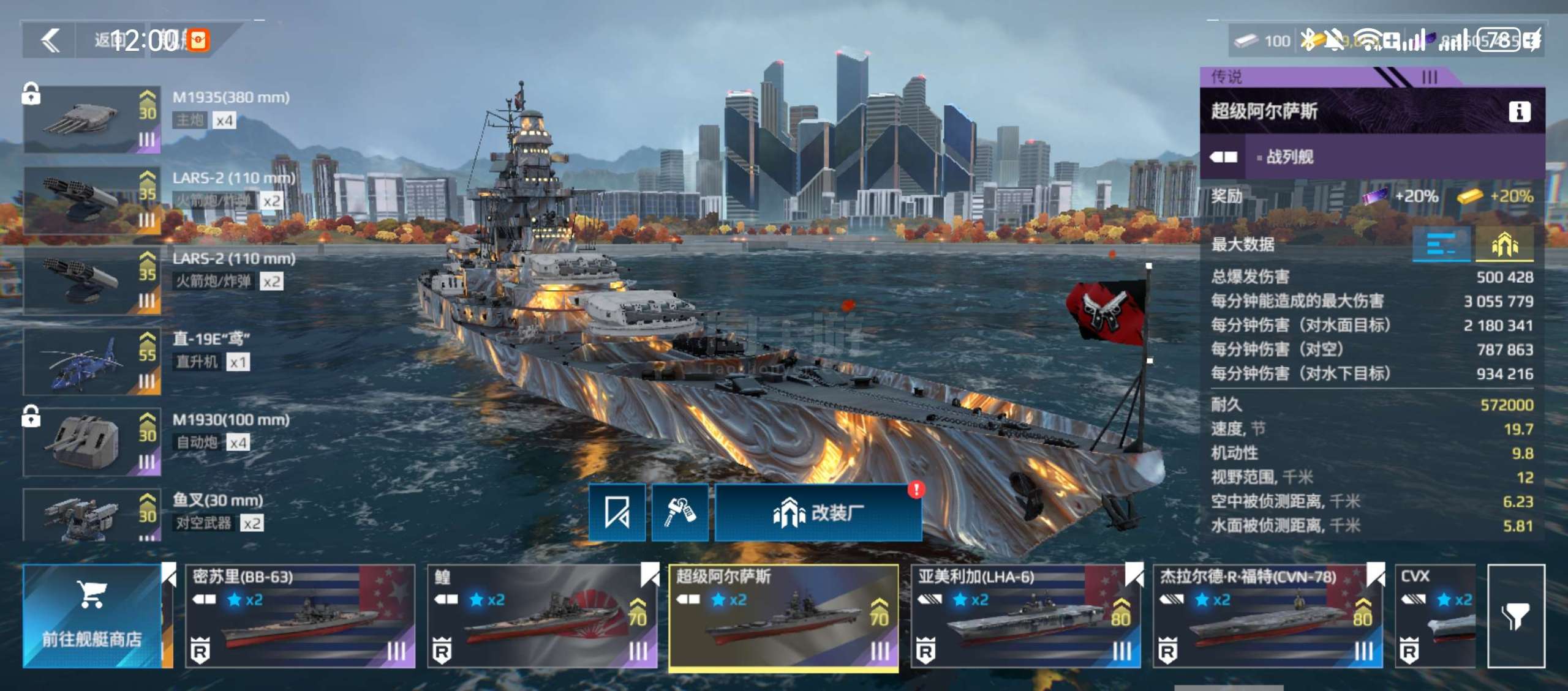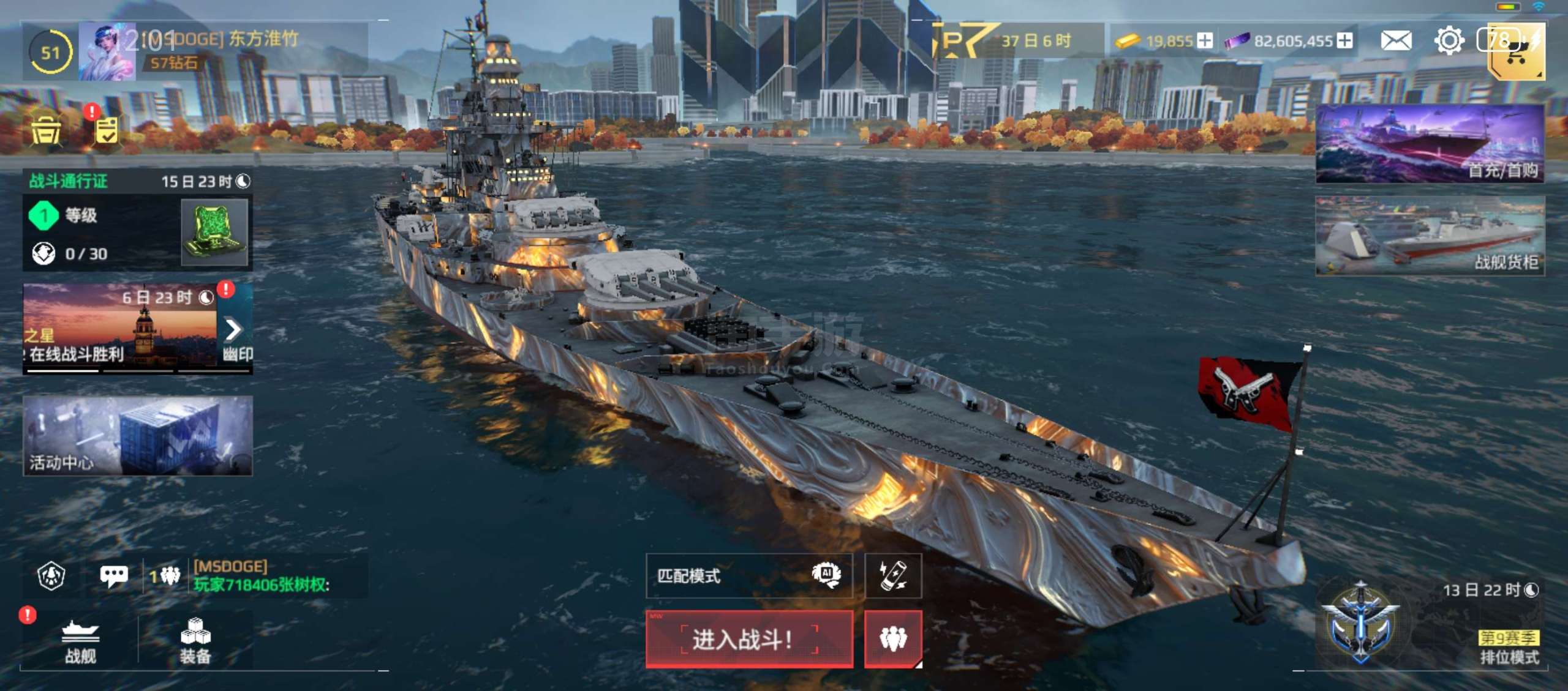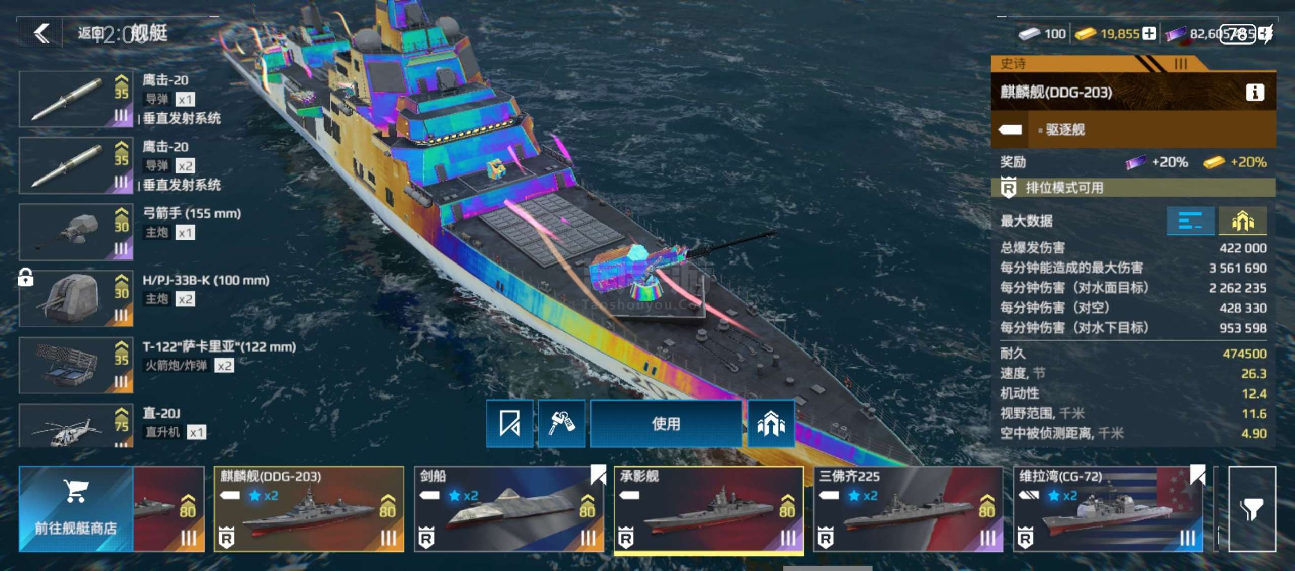满配阿尔塞斯、麒麟舰、055A、承影等一堆顶级战舰。
