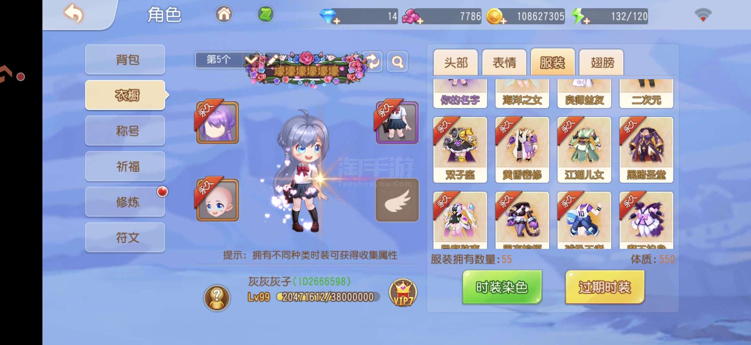 有很多绝版时装,7千粉钻,3个觉醒皮肤。觉醒系统满级。