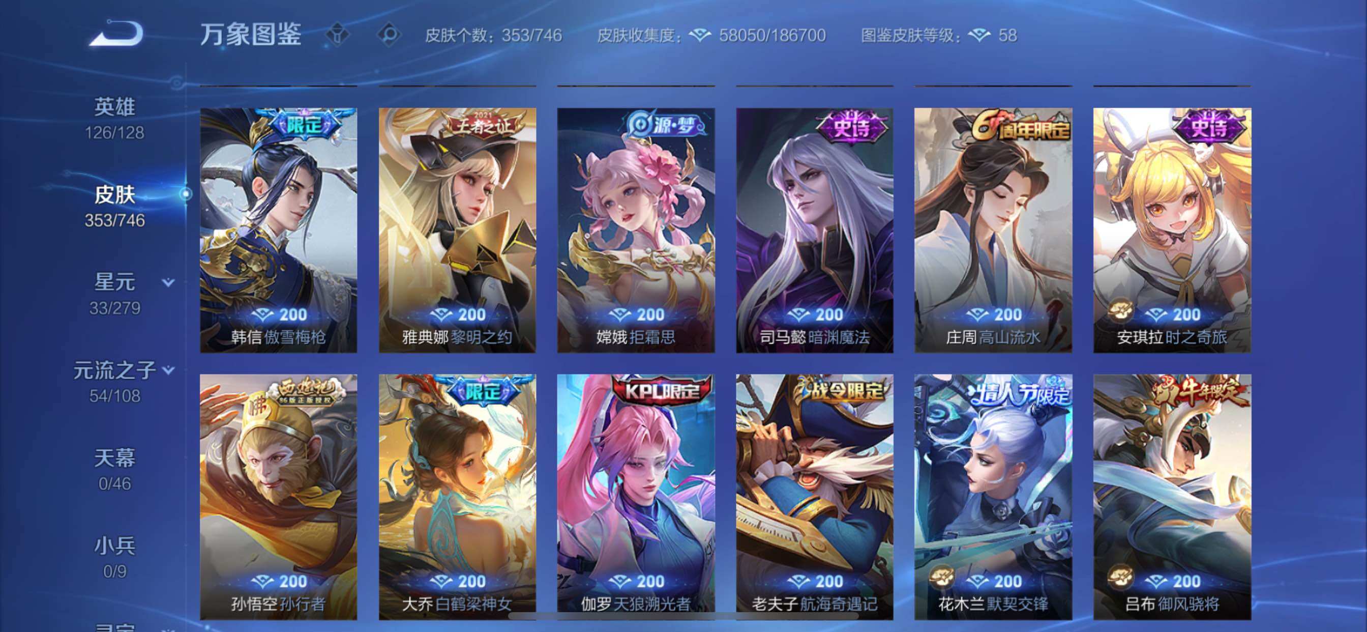 营地账号:423545964/可换绑【公孙离全皮 金标虞姬 怪盗基德 多传说限定质量号】 19按键 2星传说,18王者印记,满级铭文,可二次CD13654,苹果Q-V9-353皮肤-1典藏-2无双-2珍品传说-32传说-112史诗【英雄全皮】:孙权全皮,雅典娜全皮,鬼谷子全皮,公孙离全皮,李信全皮,马超全皮,蒙恬全皮,空空儿全皮,影全皮【荣耀典藏】:花木兰九霄神辉【无双皮肤】:公孙离离恨烟,曜器