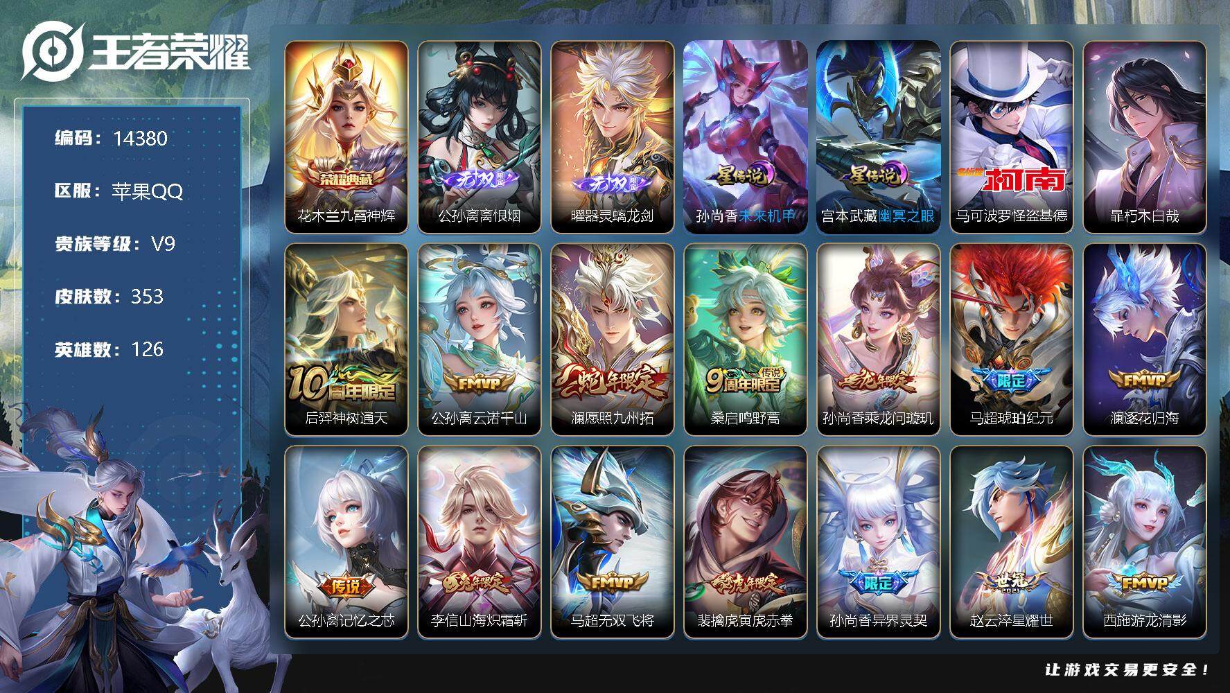 王者荣耀【苹果QQ】可换绑【公孙离全皮 金标虞姬 怪盗基德 多传说限定质量号】 19按键 2星传说
