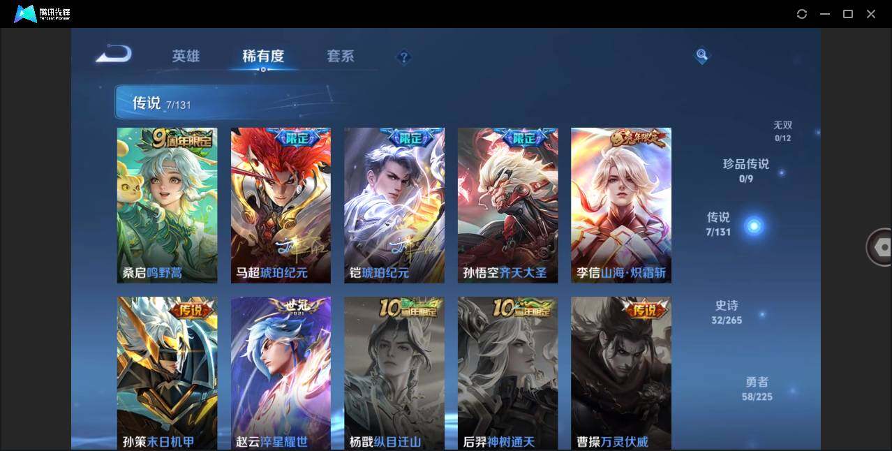 【传说皮肤】:桑启鸣野蒿,马超琥珀纪元,铠琥珀纪元,孙悟空齐天大圣,李信山海炽霜斩,孙策末日机甲,赵云淬星耀世