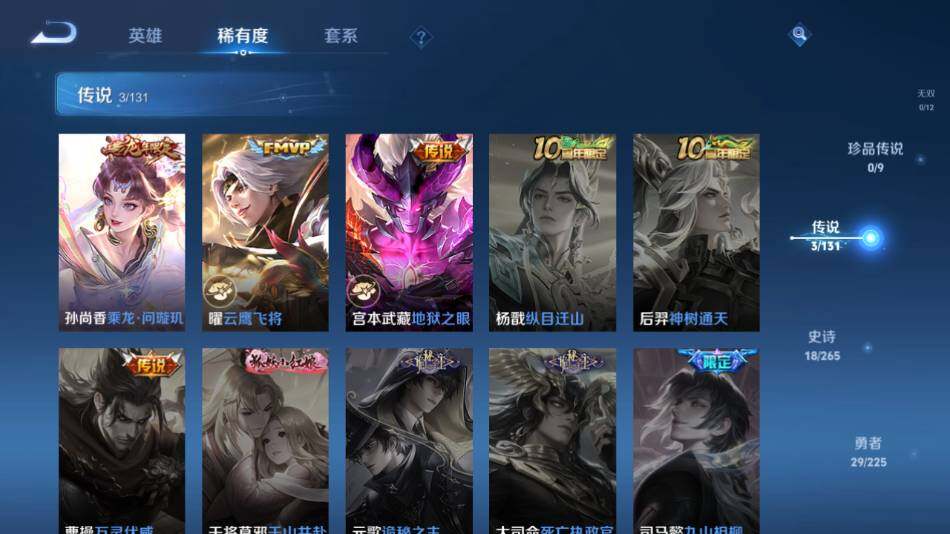 【传说皮肤】:孙尚香乘龙问璇玑,曜云鹰飞将,宫本武藏地狱之眼