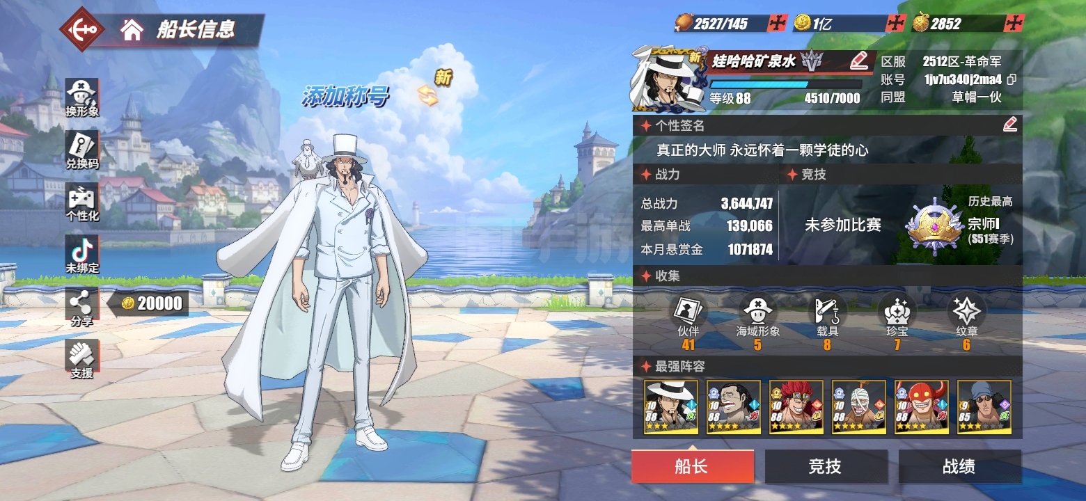 航海王热血航线【安卓官方】几个月的新区,豹子必四星,十字老沙4.5鬼岛基德,资源还可以,在2盟,直接看图便宜出!!!