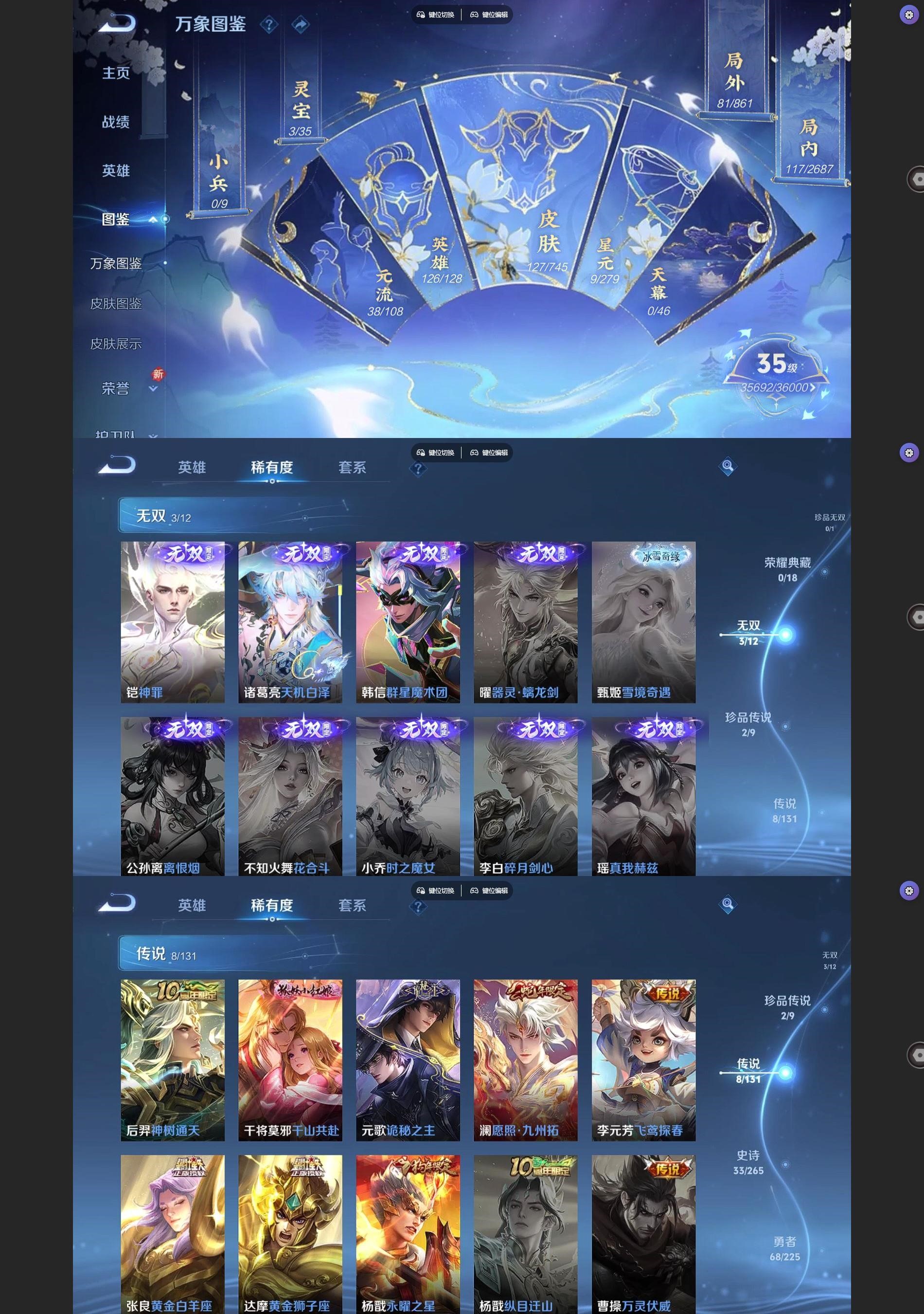 _1省标万战杨戬神罪天机白泽群星魔术团韩信黑崎一护酷洛米之心安卓Q-V7-127皮肤3无双2珍品传说8传说-(可二次)6077紫星币224幸运值
